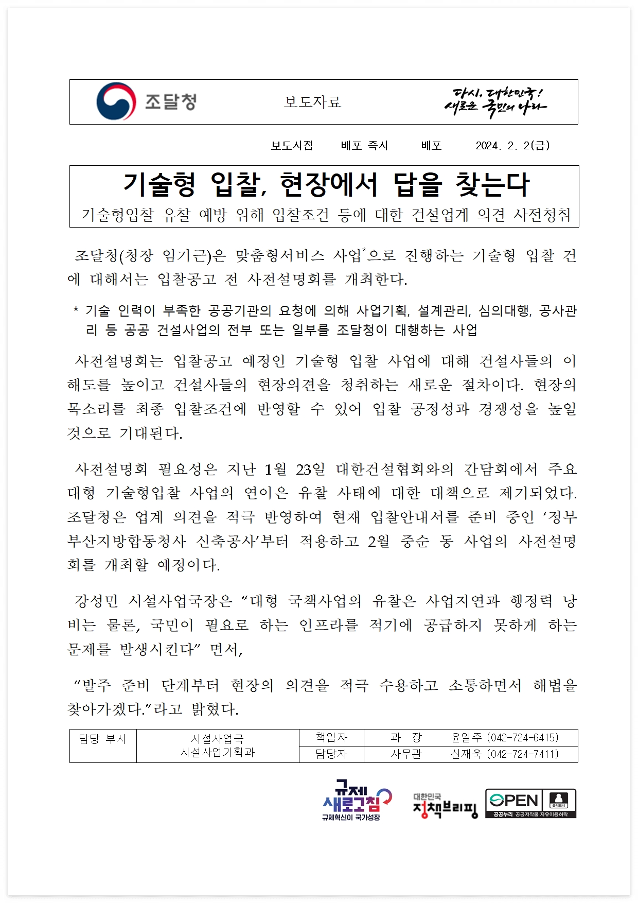 □ 담당 : 조달청 시설사업국
