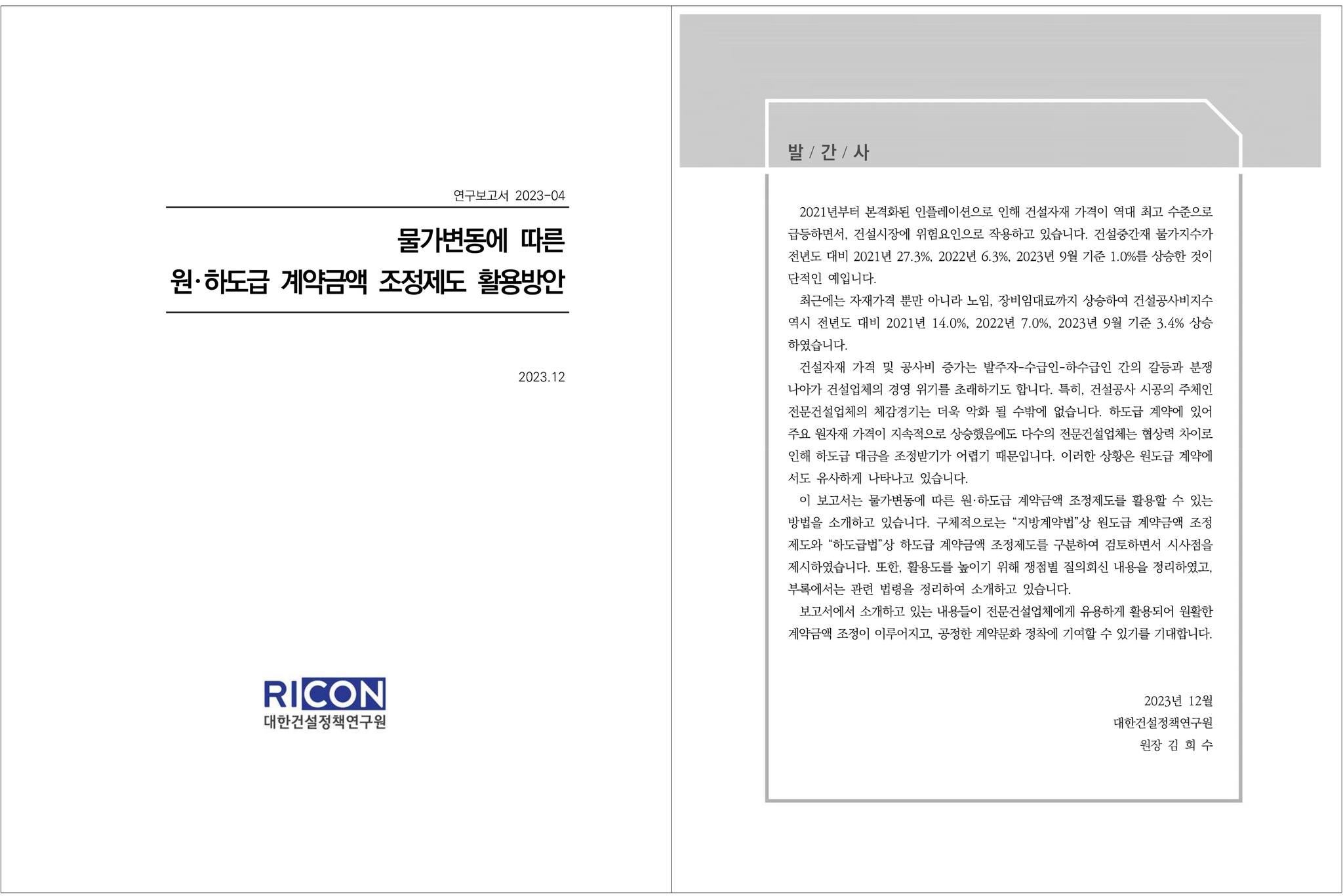 □ 자료 다운로드 : [보고서 2023-04] 물가변동에 따른 원・하도급 계약금액 조정제도 활용방안