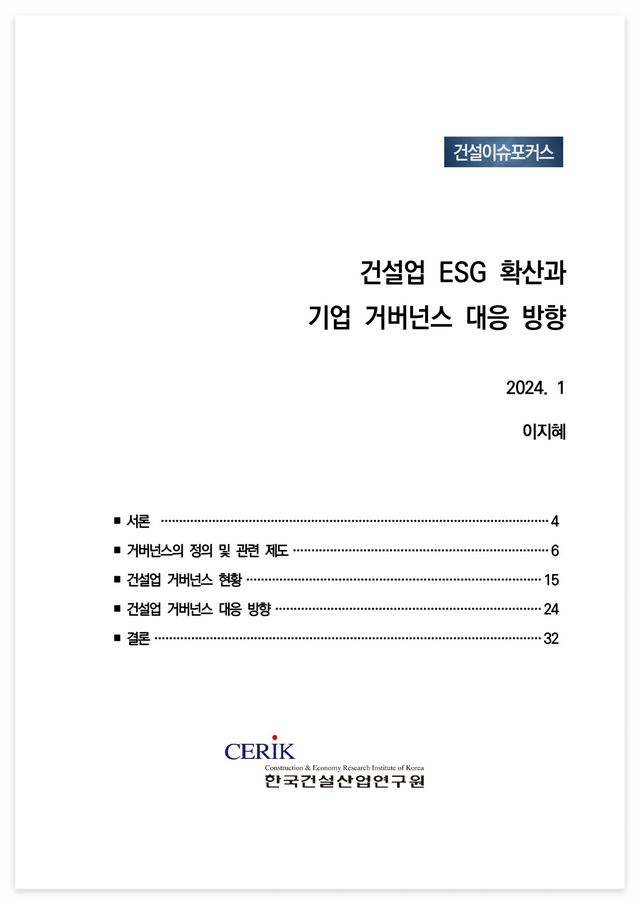 □ 제목 : 건설업 ESG 확산과 기업 거버넌스 대응 방향