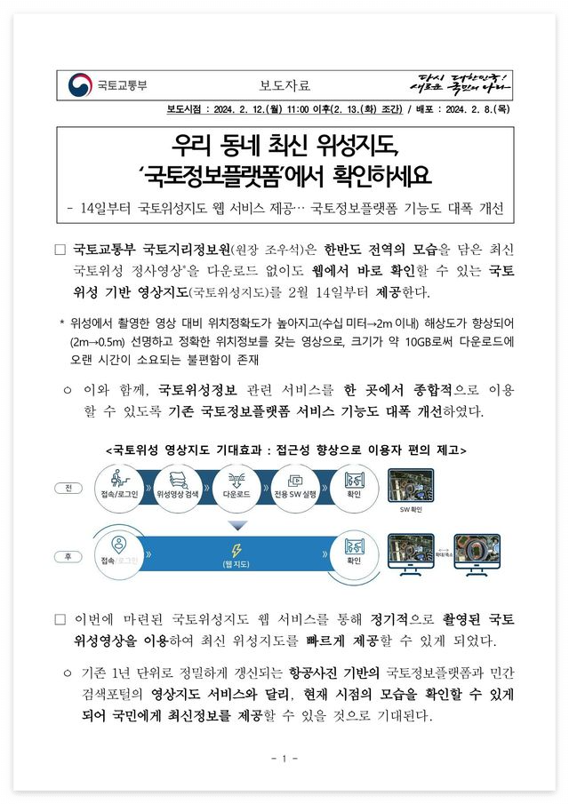 □ 자료 다운로드 : 240213(조간)_우리_동네_최신_위성지도__국토정보플랫폼에서_확인하세요(국토위성센터)