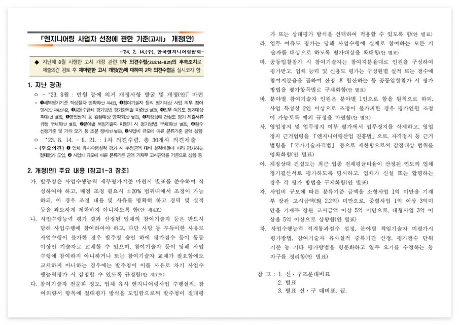 □ 자료 다운로드 : (붙임1) 엔지니어링 사업자 선정에 관한 기준 개정(안)