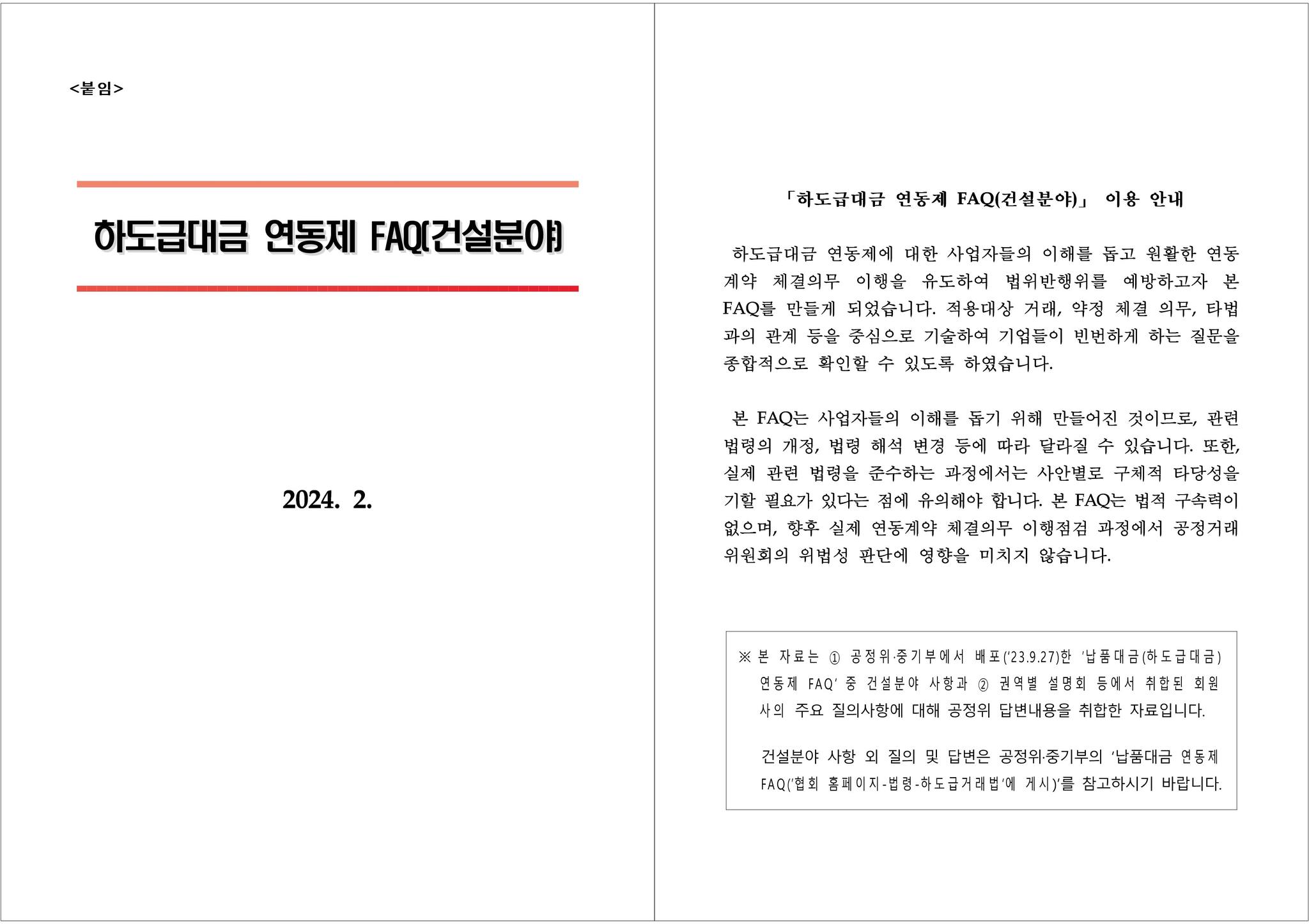 □ 자료 다운로드 : 붙임 240227 하도급대금 연동제 FAQ(건설분야)