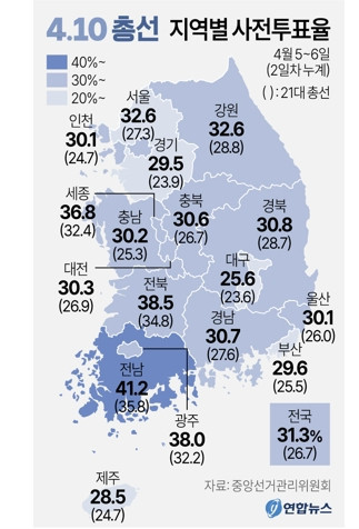 보시는 바와 같이 국회의원 총선 사상 최고 사전 투표율을 기록했습니다.