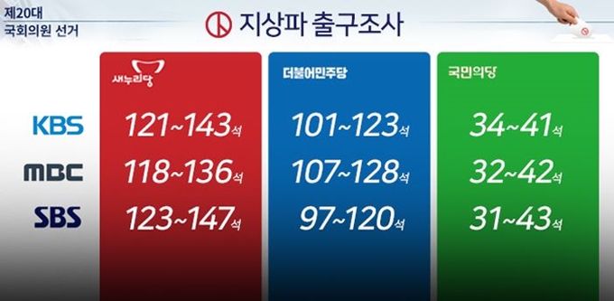 방송 3사 총선 출구조사 기록 정리
