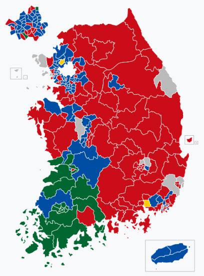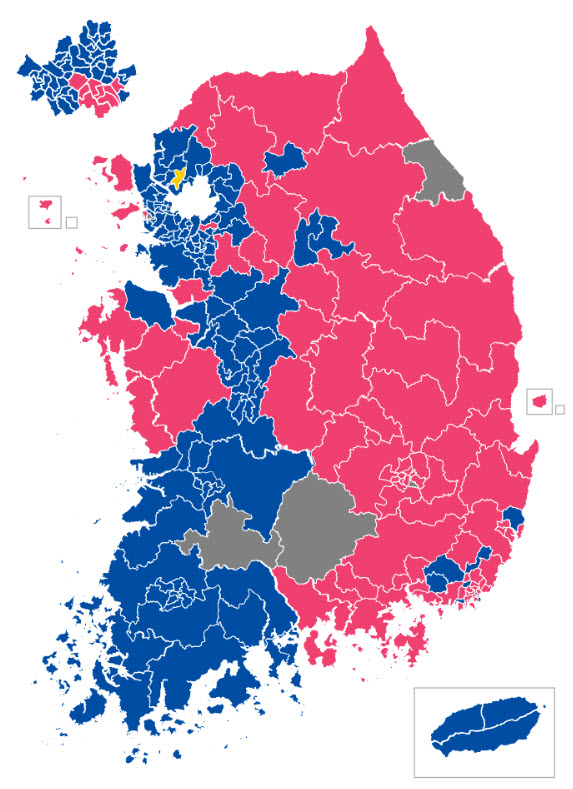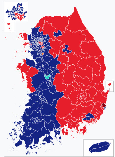 역시 선거 결과는 지도로 보는 것이 가장 이해하기 좋고 편리한 것 같습니다.