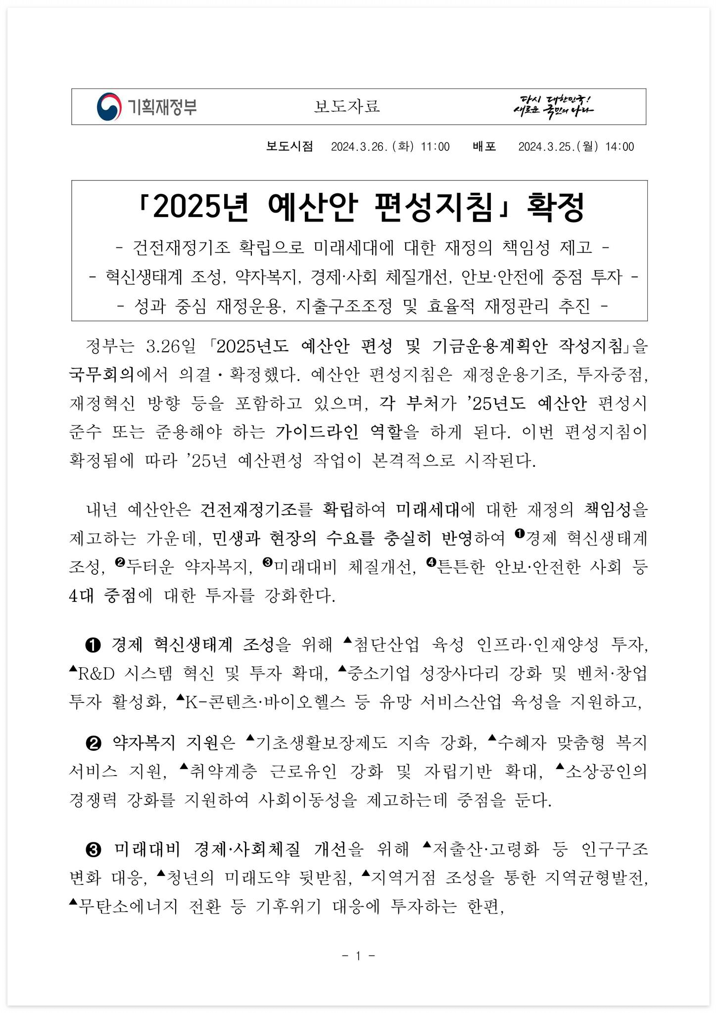 □ 자료 다운로드 : 2025년 예산안 편성지침 (보도자료)