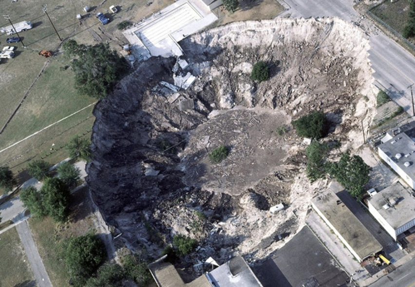 10. 1994년 6월 미국 플로리다에서 발생한 싱크홀. 직경 32m, 깊이 56m였으며 쓰레기 처리장에서 발생했습니다. 이 사고로 인해 플로리다 주의 90%의 식수원을 담당하고 있는 플로리다 대수층으로 2천만 파운드의 액체 인산이 흘러 들어갔습니다. 이 시설을 운영하는 회사는 지하수의 오염 확산을 막기 위해 7백만불의 돈을 지불해야 했습니다.