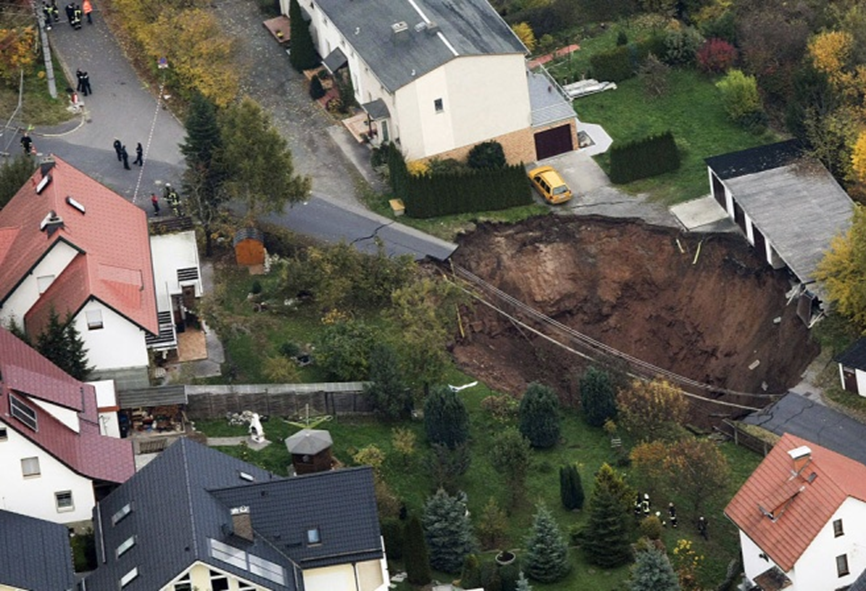 17. 2010년 11월 1일 독일의 슈말칼덴에서 발생한 싱크홀. 자세한 피해와 원인은 알려지지 않았습니다.