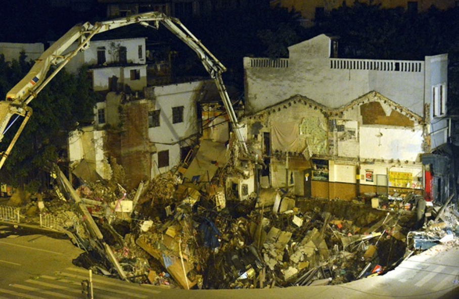 14. 2013년 1월 28일 중국 광동에서 발생한 싱크홀. 지하철 공사장 인근에서 발생한 것으로 직경 10m에 깊이 10m였으며 다행히 인명 피해는 없었다고 합니다. 원인은 지하철 공사였다고 합니다.