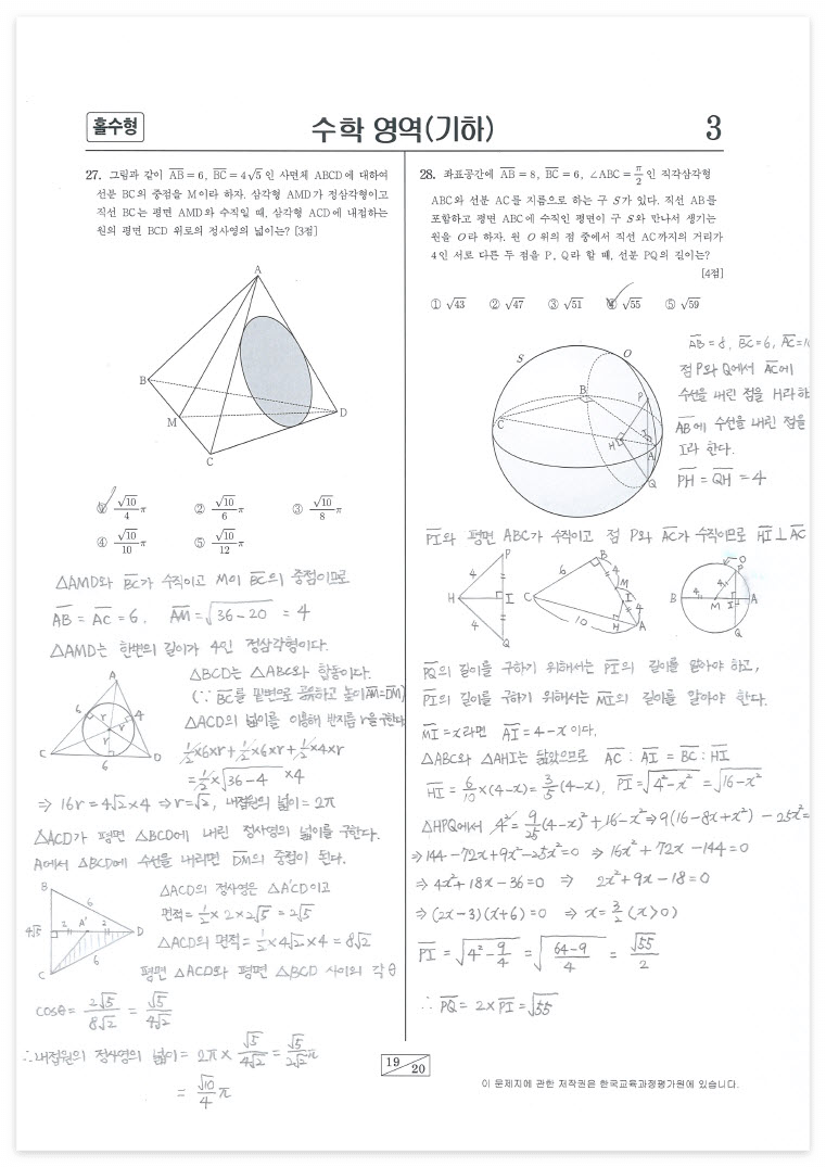 [엔지니어가 취미로 푸는 수학] 2023년 수능 수학 손글씨 문제 풀이 풀버전 스캔 파일 다운로드