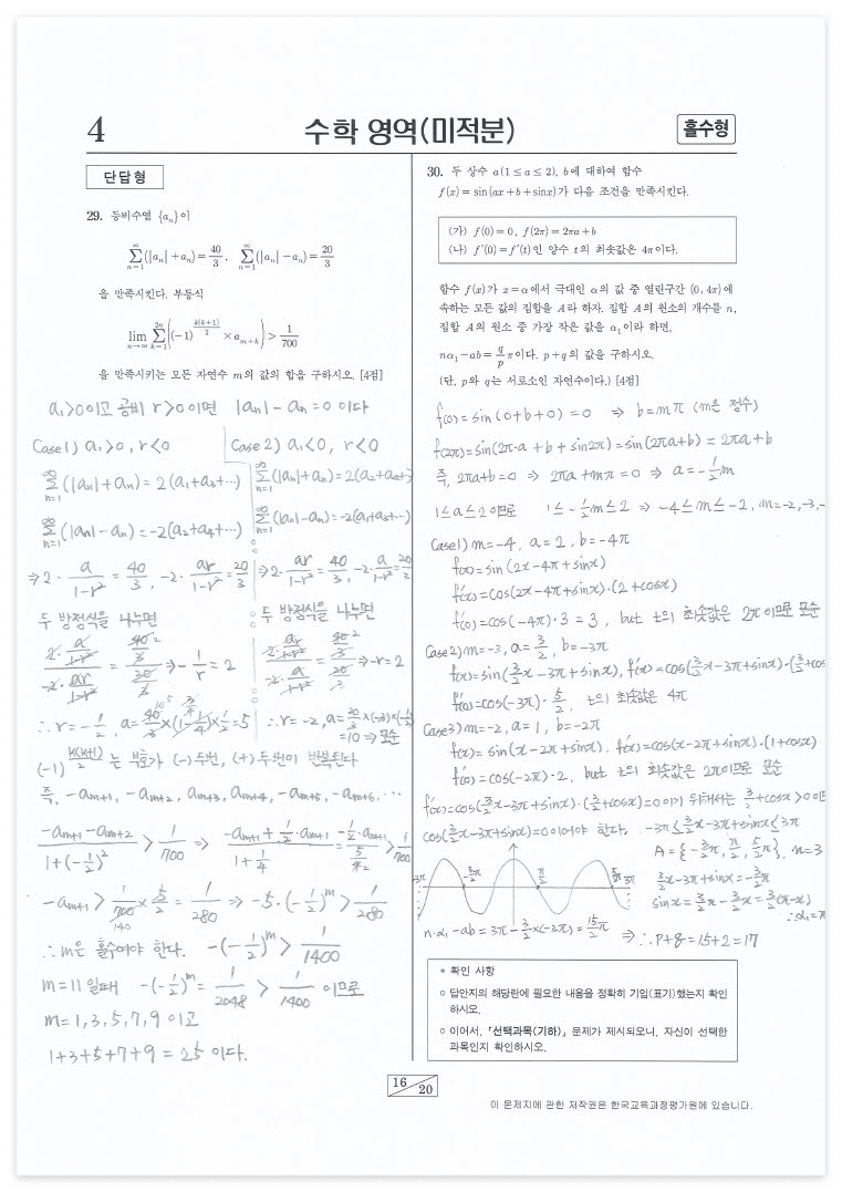 [엔지니어가 취미로 푸는 수학] 2024년 수능 수학 손글씨 문제 풀이 풀버전 스캔 파일 다운로드