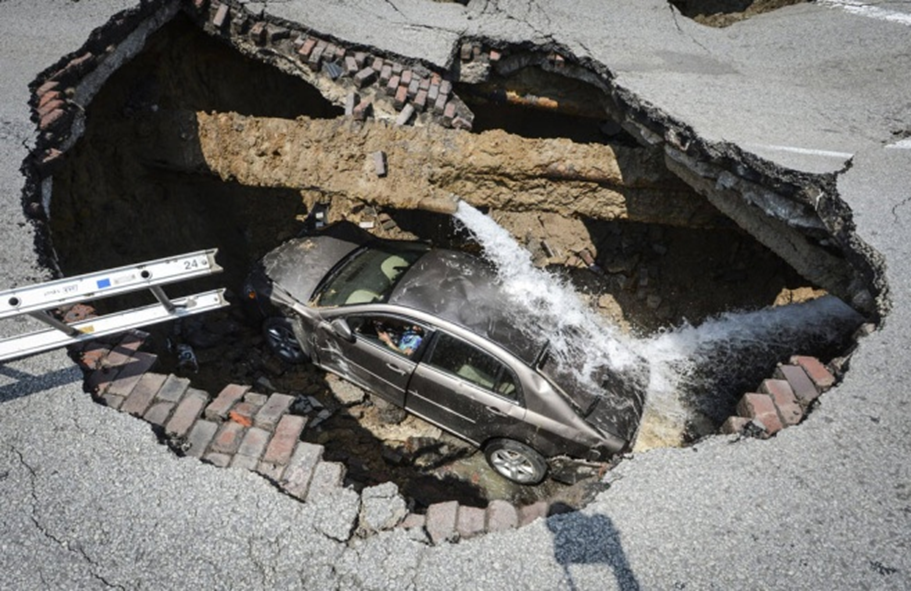 토목 엔지니어들이 가장 우려하는 부분으로는 도시 지역에서 발생하는 싱크홀입니다. 원인은 바로 상수관 파열, 오수관 붕괴, 관의 노후입니다. 지하수의 과잉 양수 및 배수로 인해 발생하기도 합니다.