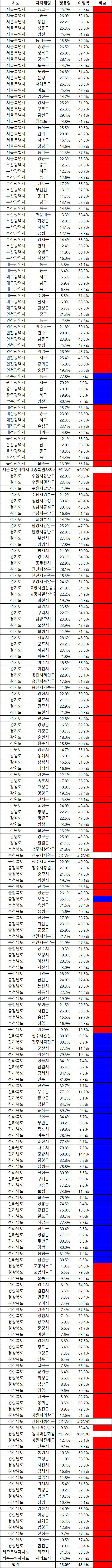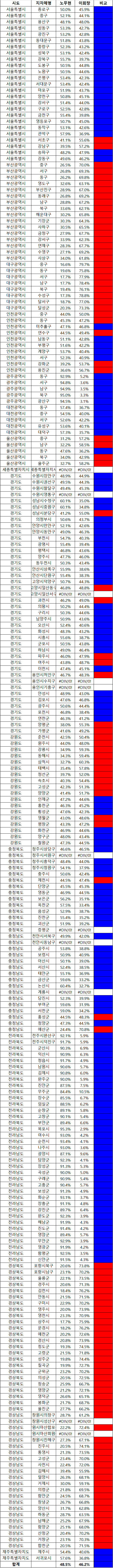 | 경남 | 양산시 | 41.8% | 53.0% |