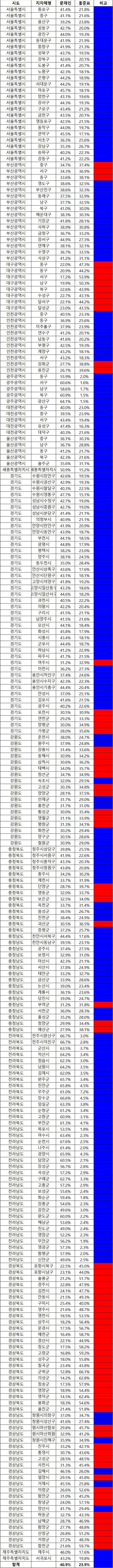 | 경북 | 울릉군 | 23.9% | 72.4% |