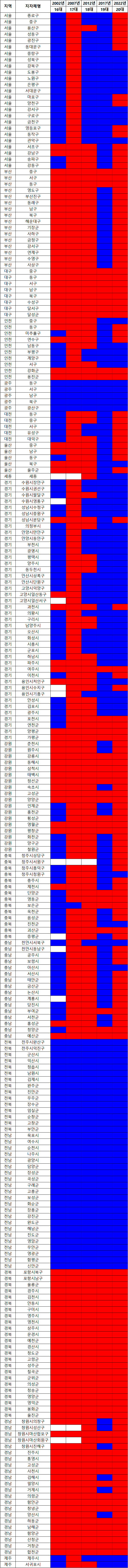 | 구분 | 2002년 | 2007년 | 2012년 | 2017년 | 2022년 | 2025년 |