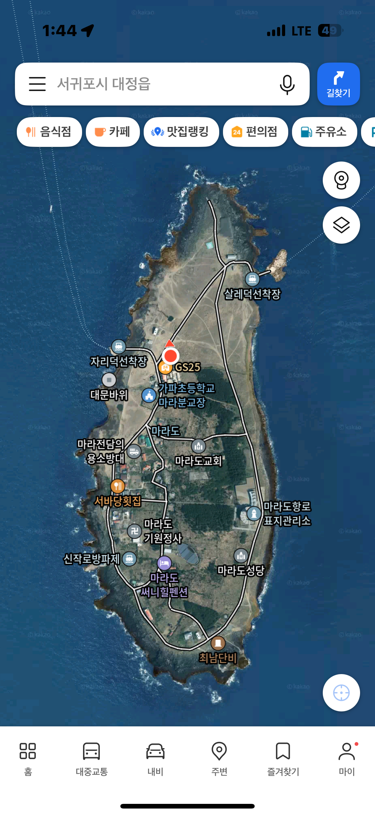 마라도는 달걀처럼 세로로 길쭉하게 생겼고 맨 위에서 내렸으니 반대라고 하면 아래쪽 끝이라 생각했으나,