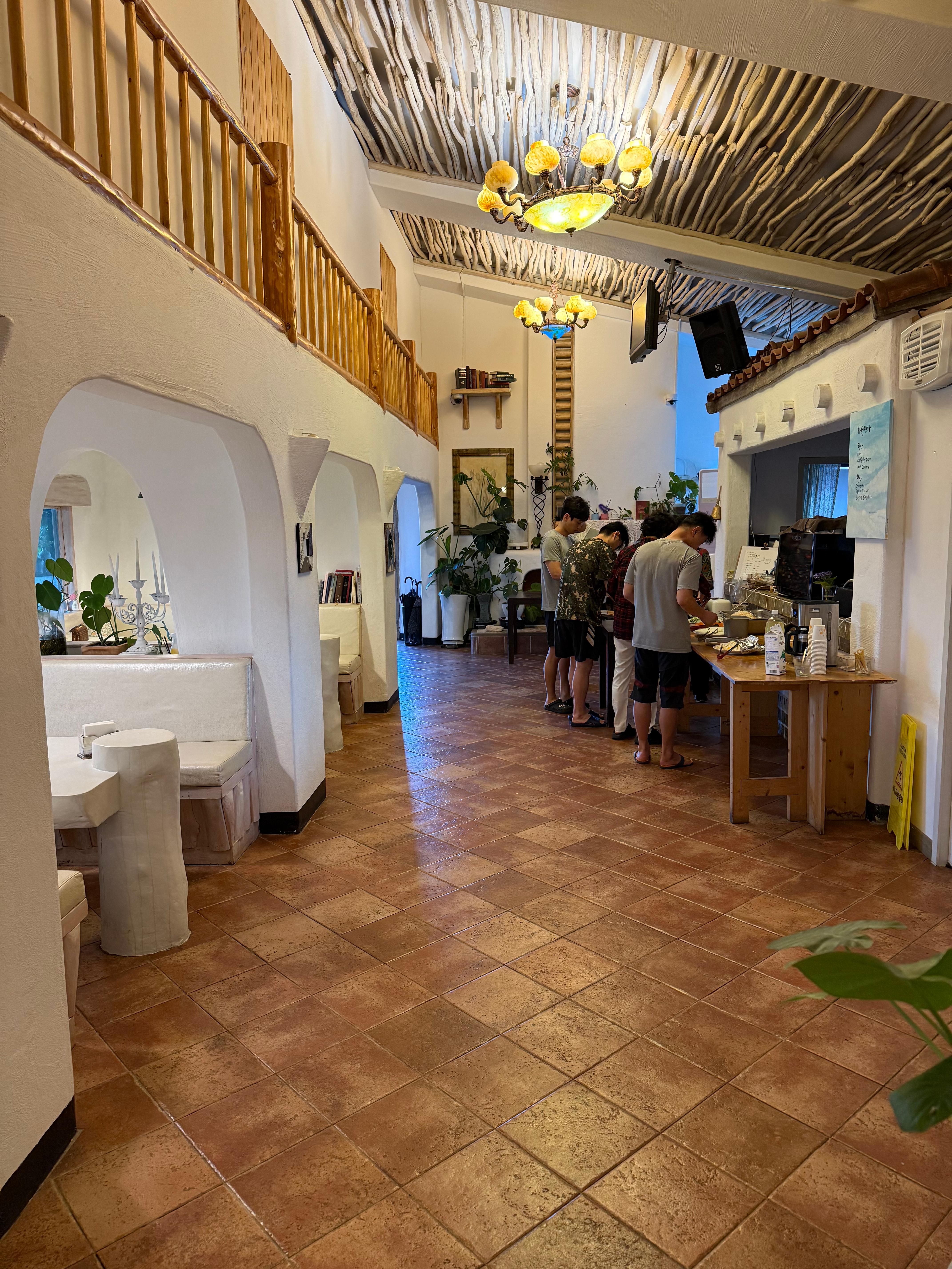 숙소로 돌아와 샤워하고 아침 7시에 무료 조식을 먹으러 갔다.