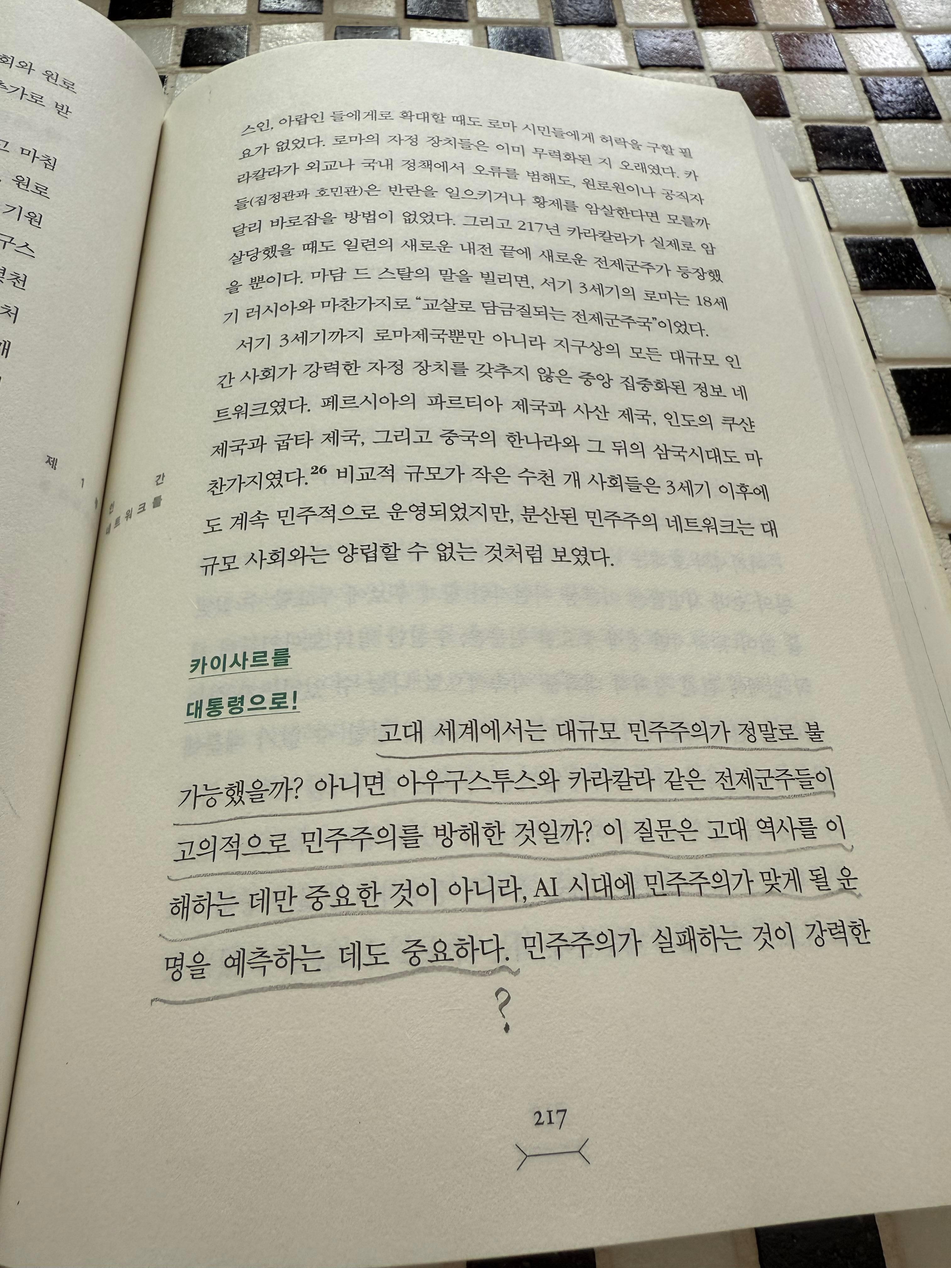 유발 하라리의 넥서스 (Nexus)라는 책인데 AI 얘기로 시작하더니 민주주의 얘기만 한다.
