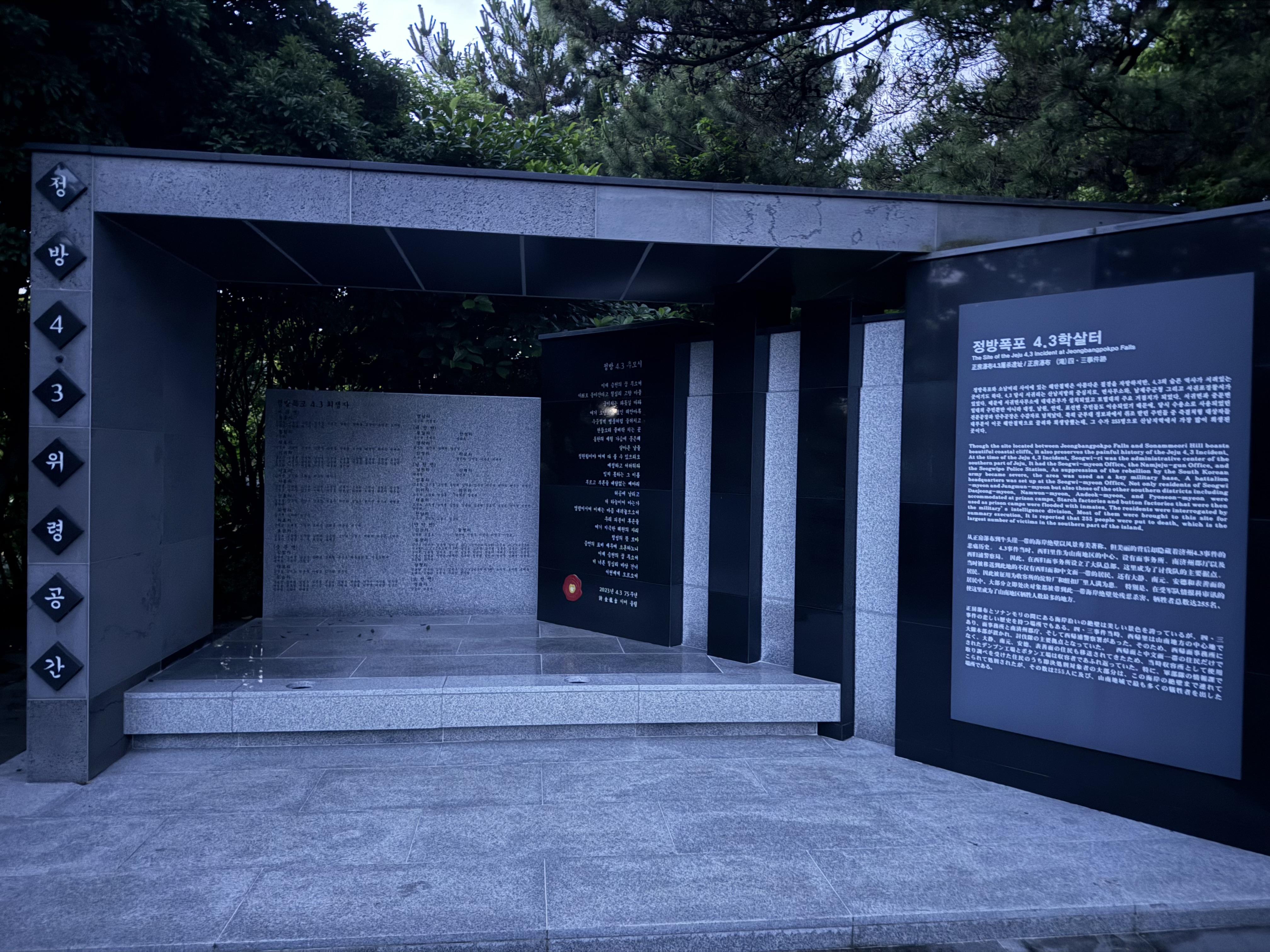옆에는 정방폭포 4.3 학살터 유적지가 있다.