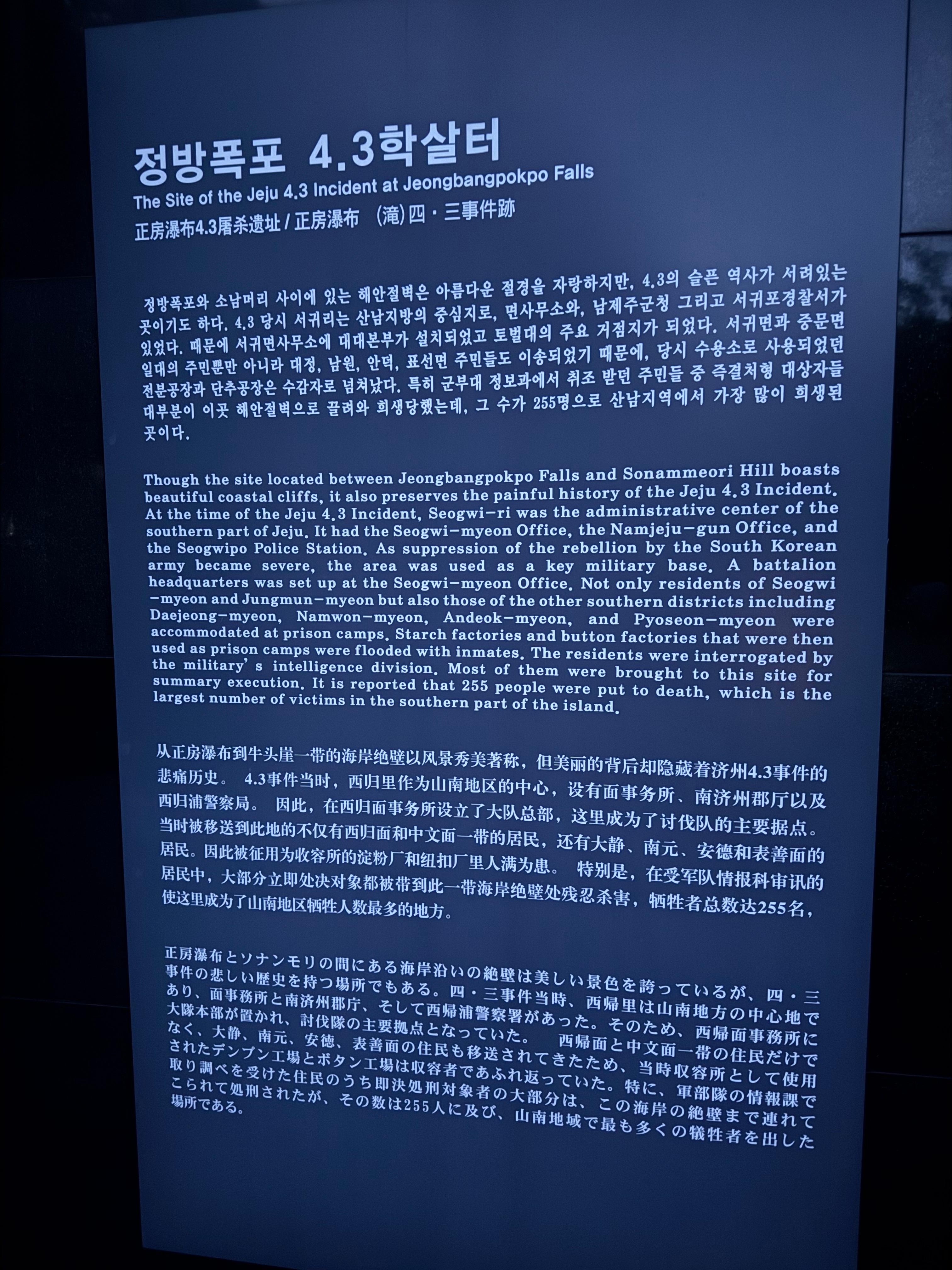 다들 돈 내서 정방폭포를 구경하러 가겠지만, 이런 슬픈 역사도 함께 기억하길 바란다.