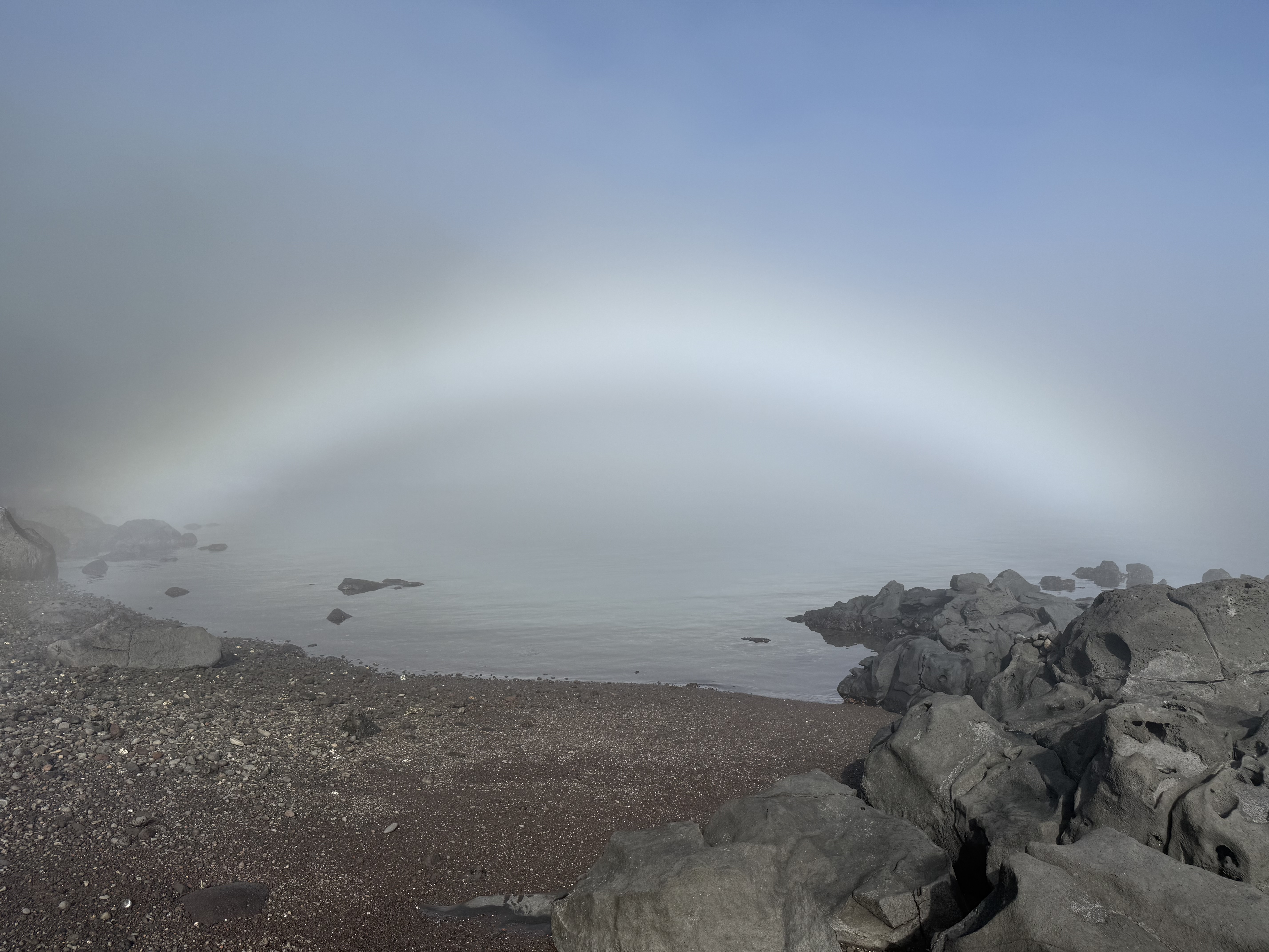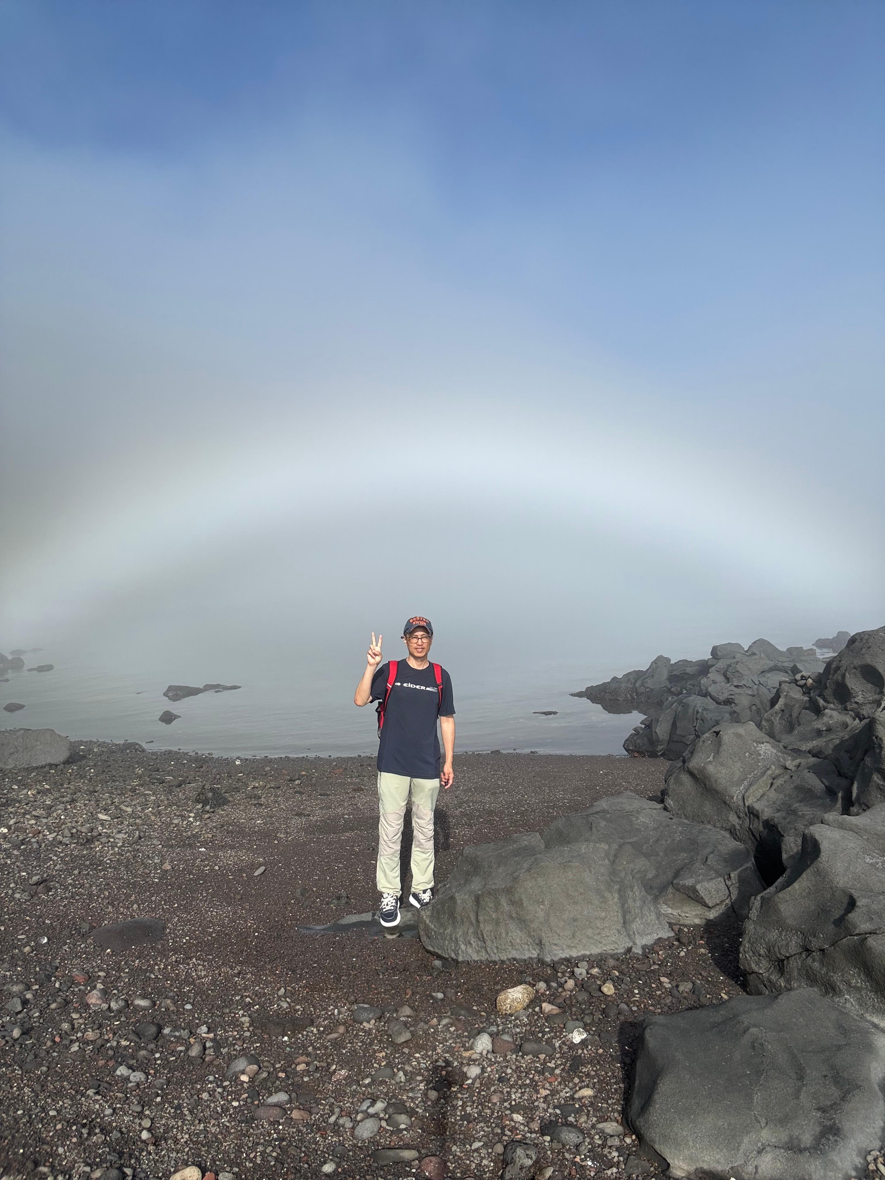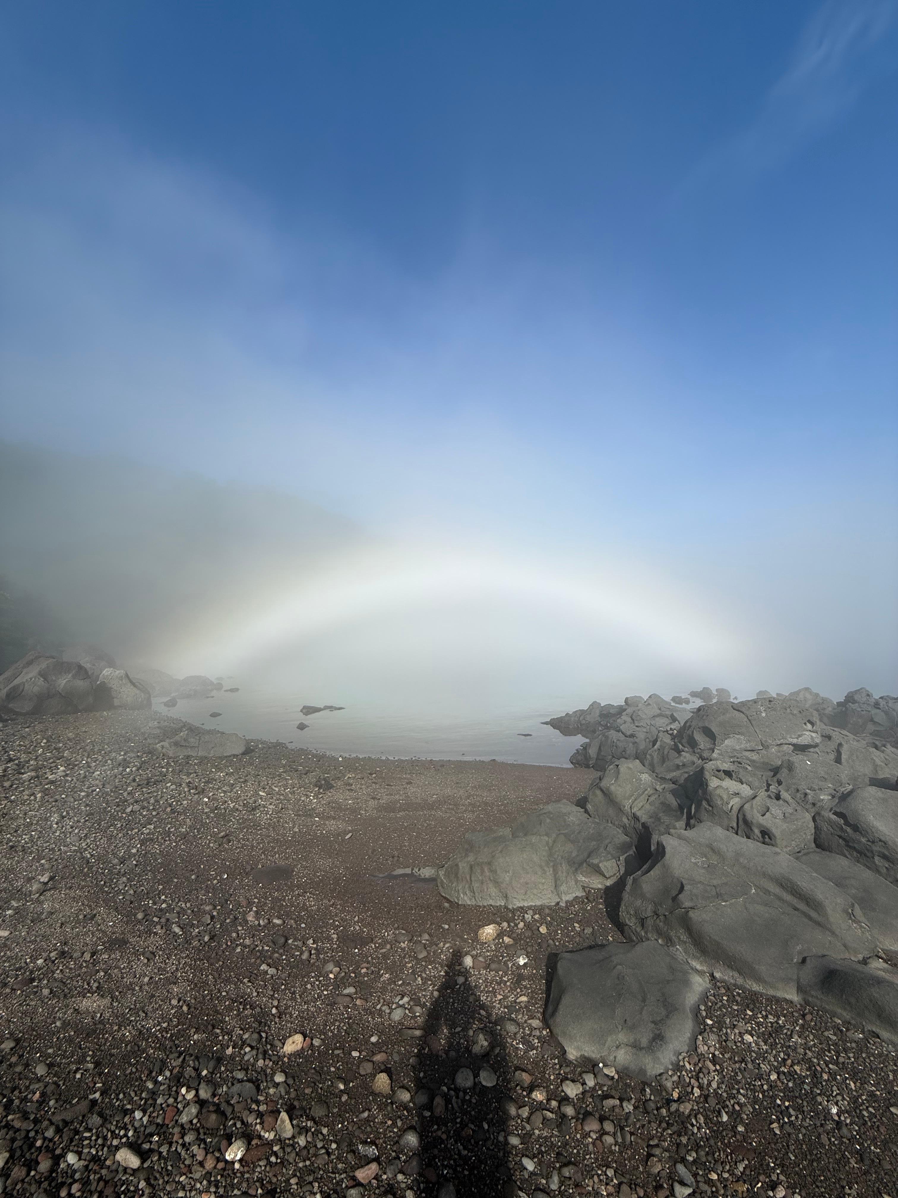 해무에 해가 비춰지지 무지개가 생긴 모양이다.