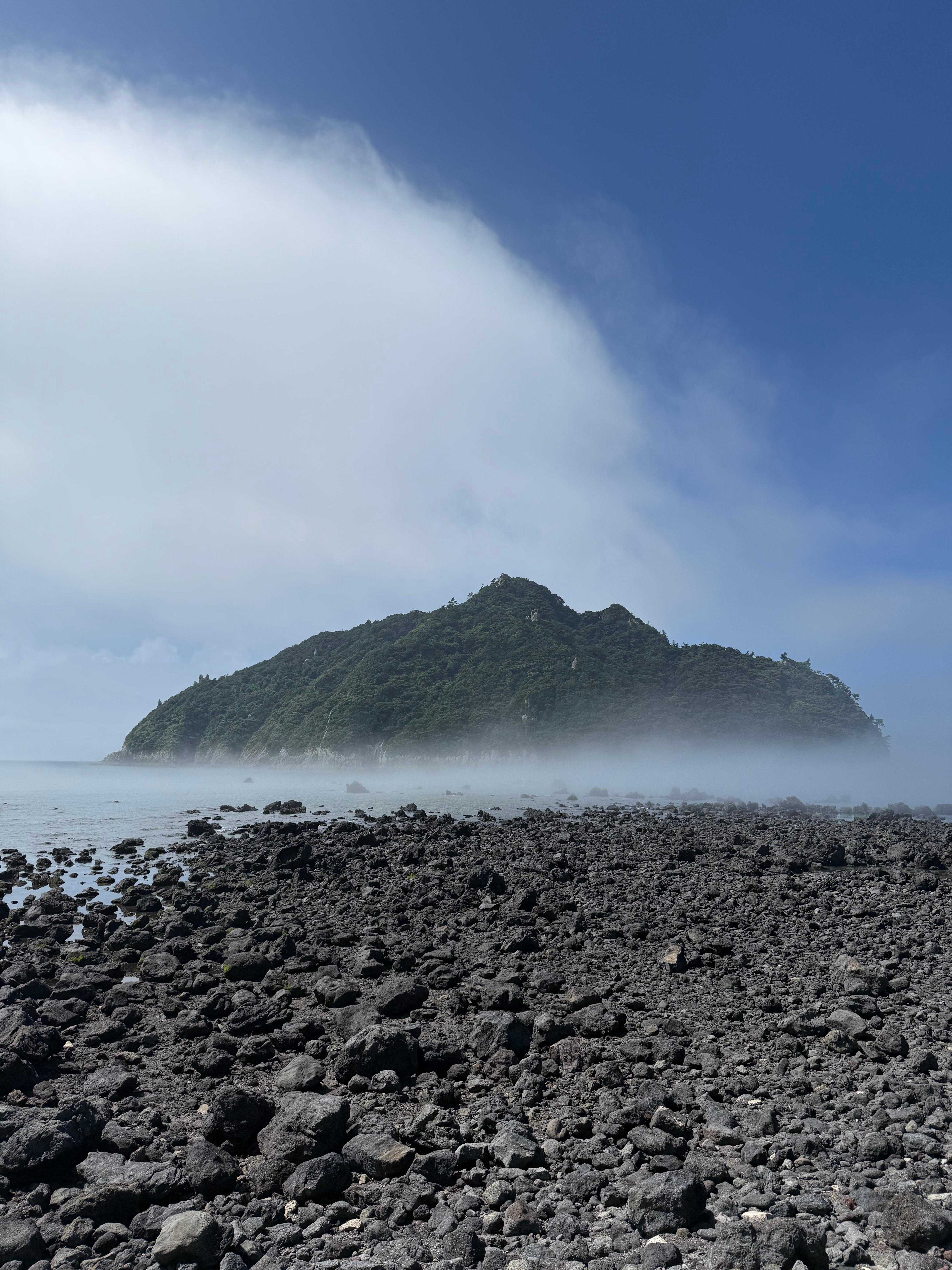 숙소에서도 보이는 섶섬이 해무와 함께 하니 마치 공중에 떠 있는 듯한 모습이다.
