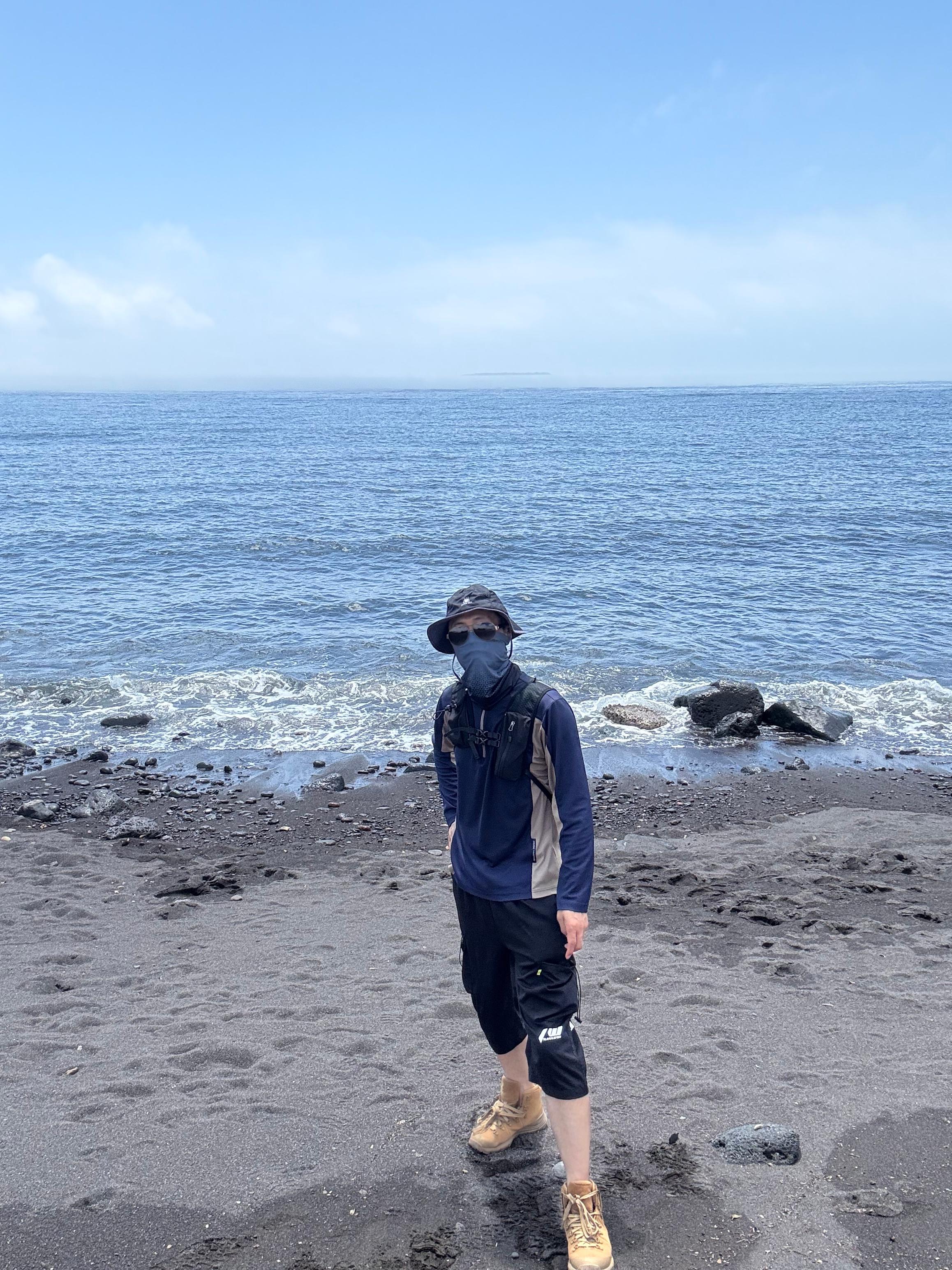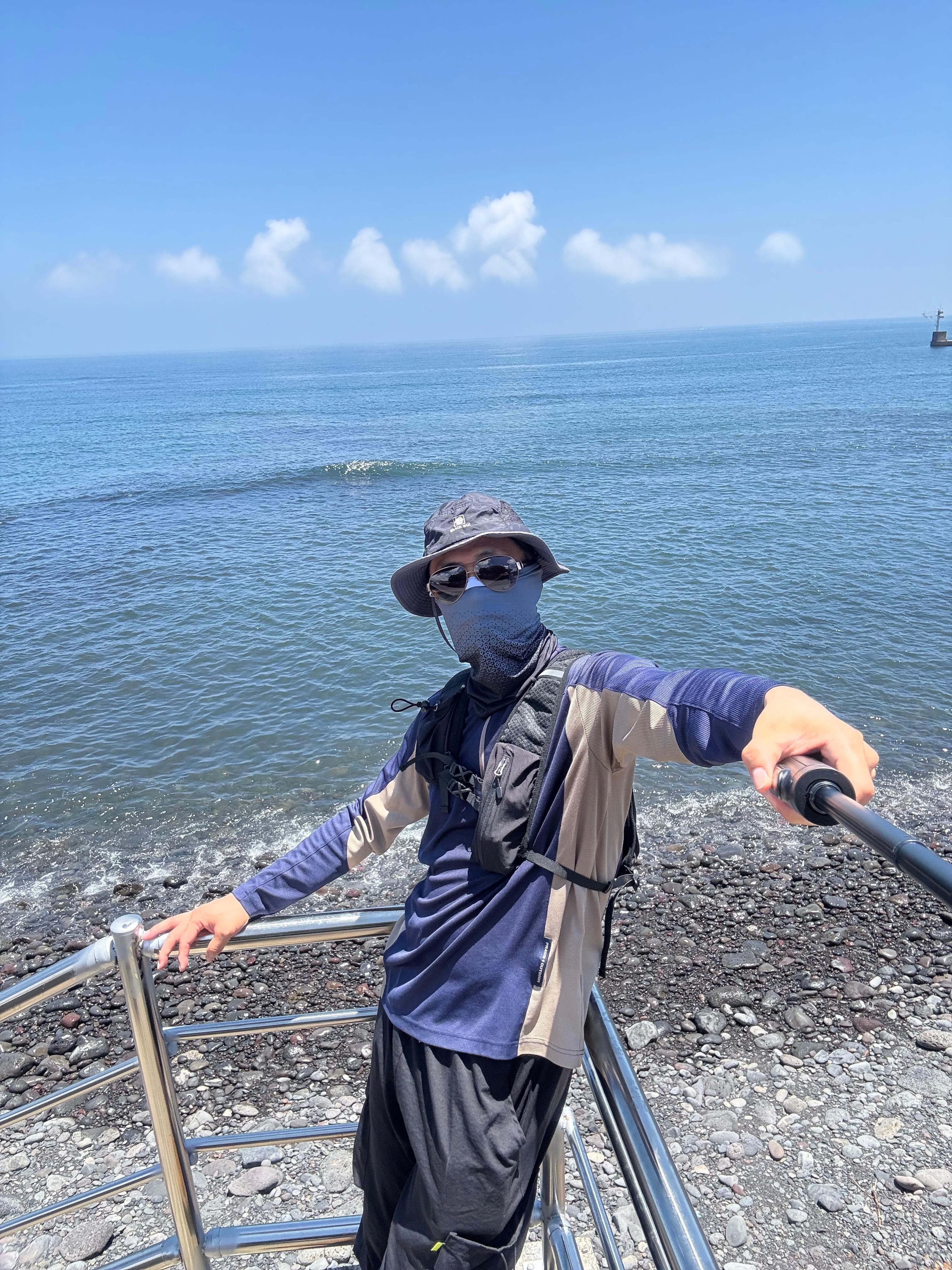 잠시 쉬고 싶어 그늘을 찾고 있었는데 지도를 보니 숲길은 한참 남아있어 그냥 해변가에 앉아 잠시 물 한잔 하며 쉬었다.