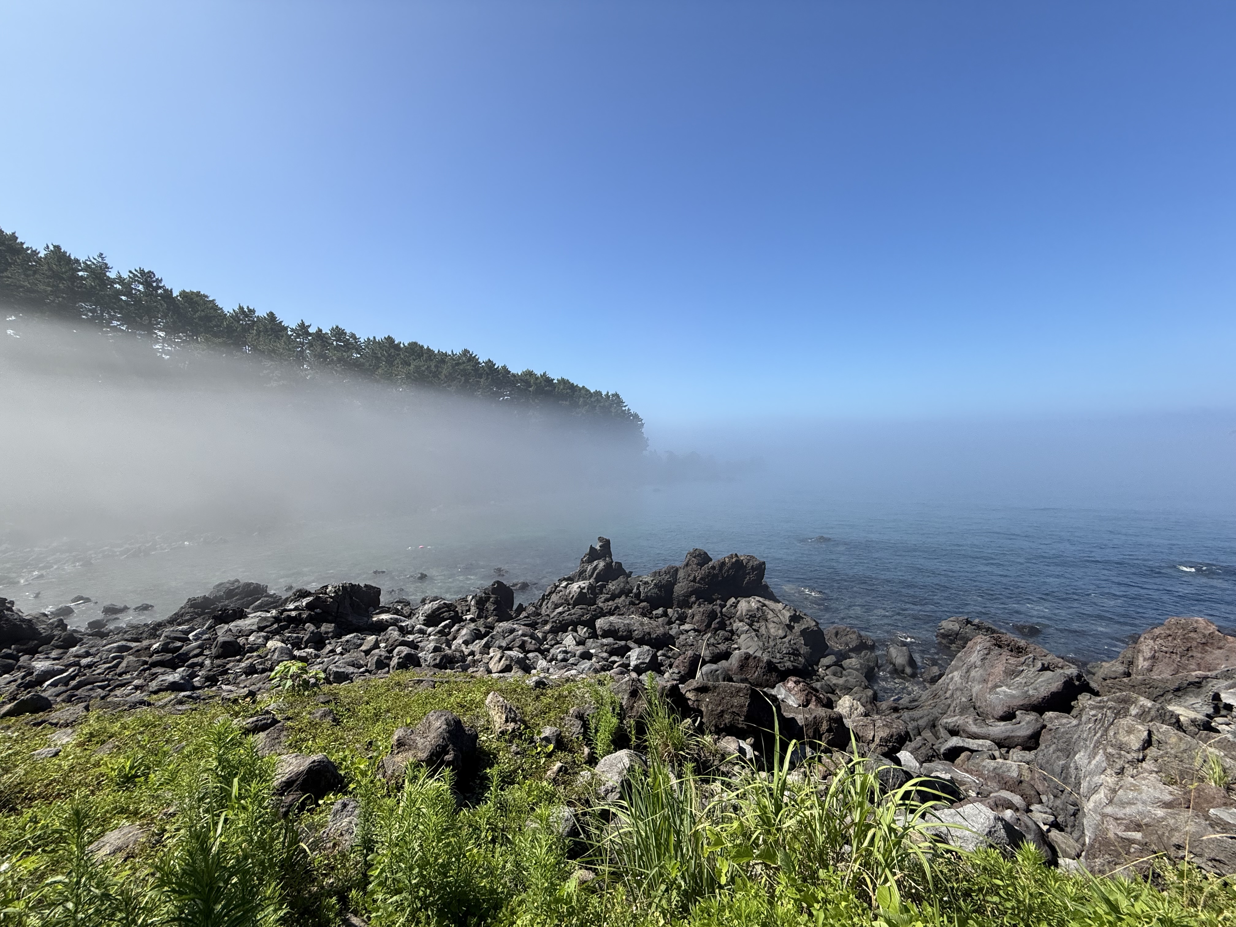 출발하자마자 바닷가는 해무로 덮혀있다.