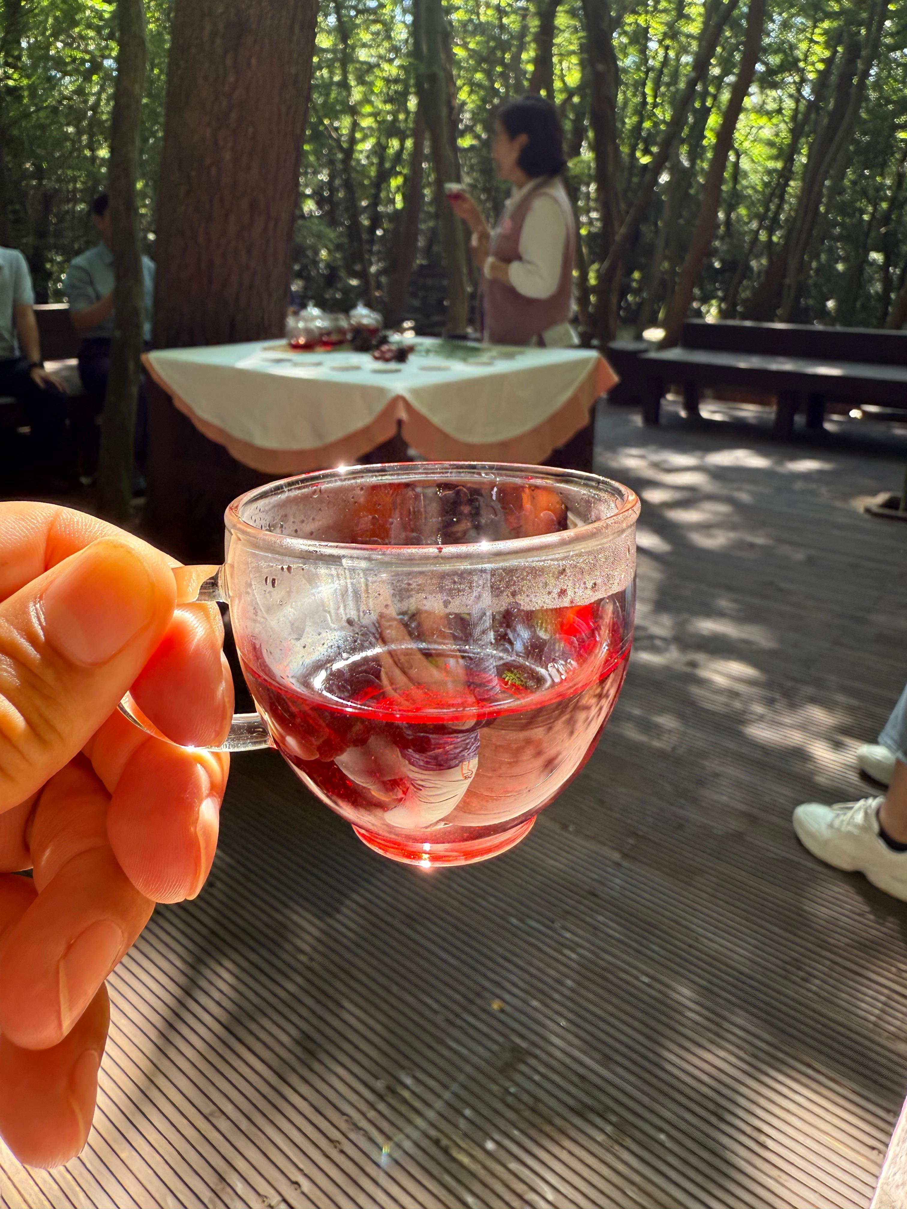 비트와 귤 껍데기로 만든 차라고 하는데 색깔, 맛, 향이 모두 독특했다.