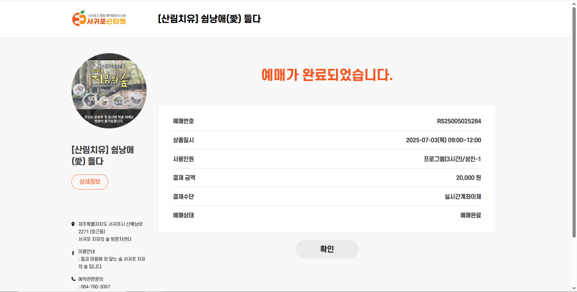 미리 며칠 전에 홈페이지에서 예약과 결재를 했다.
