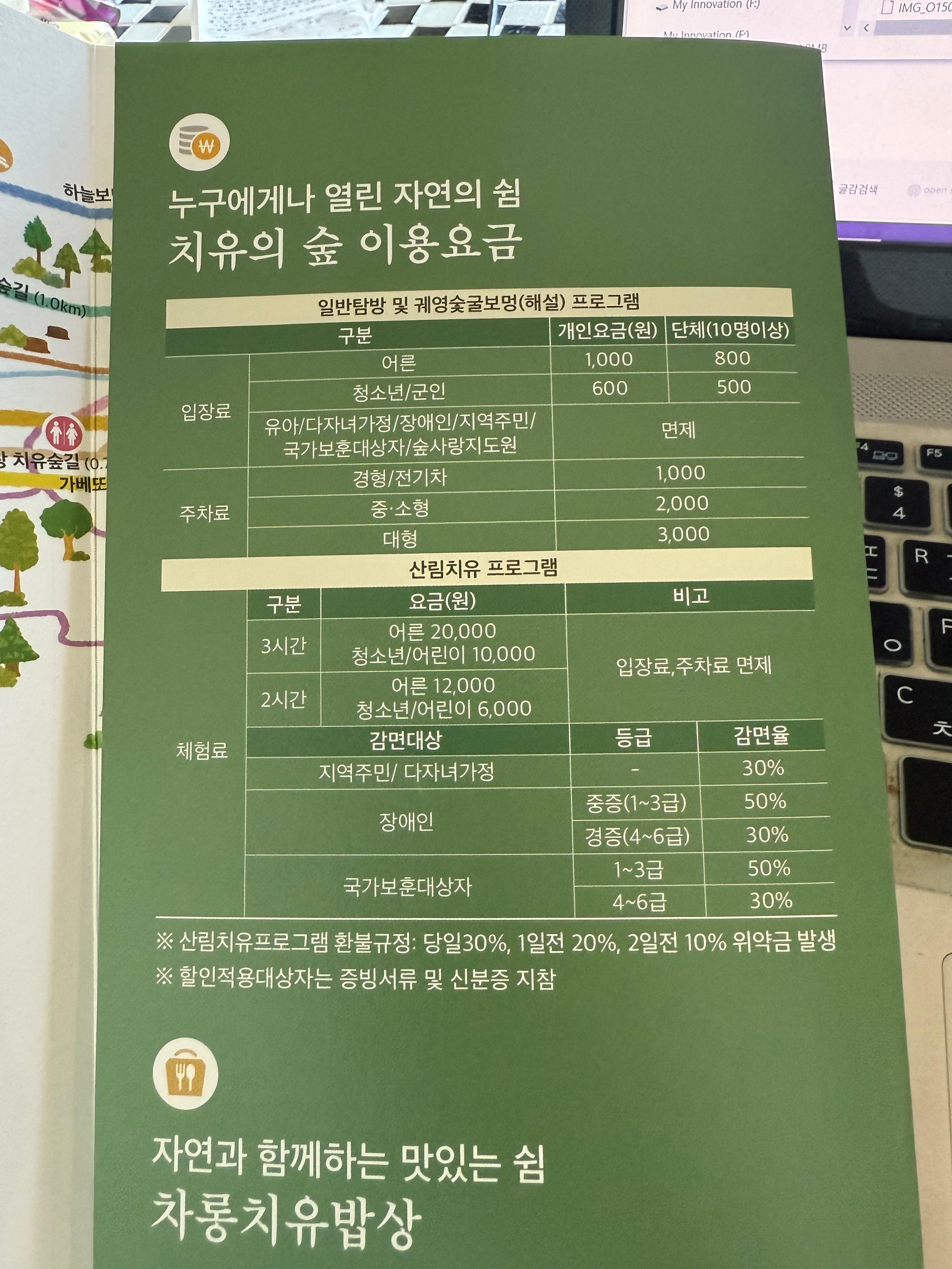 사전 답사 때 가져왔던 팜플렛을 보고 3시간짜리 산림치유 프로그램을 선택했다.