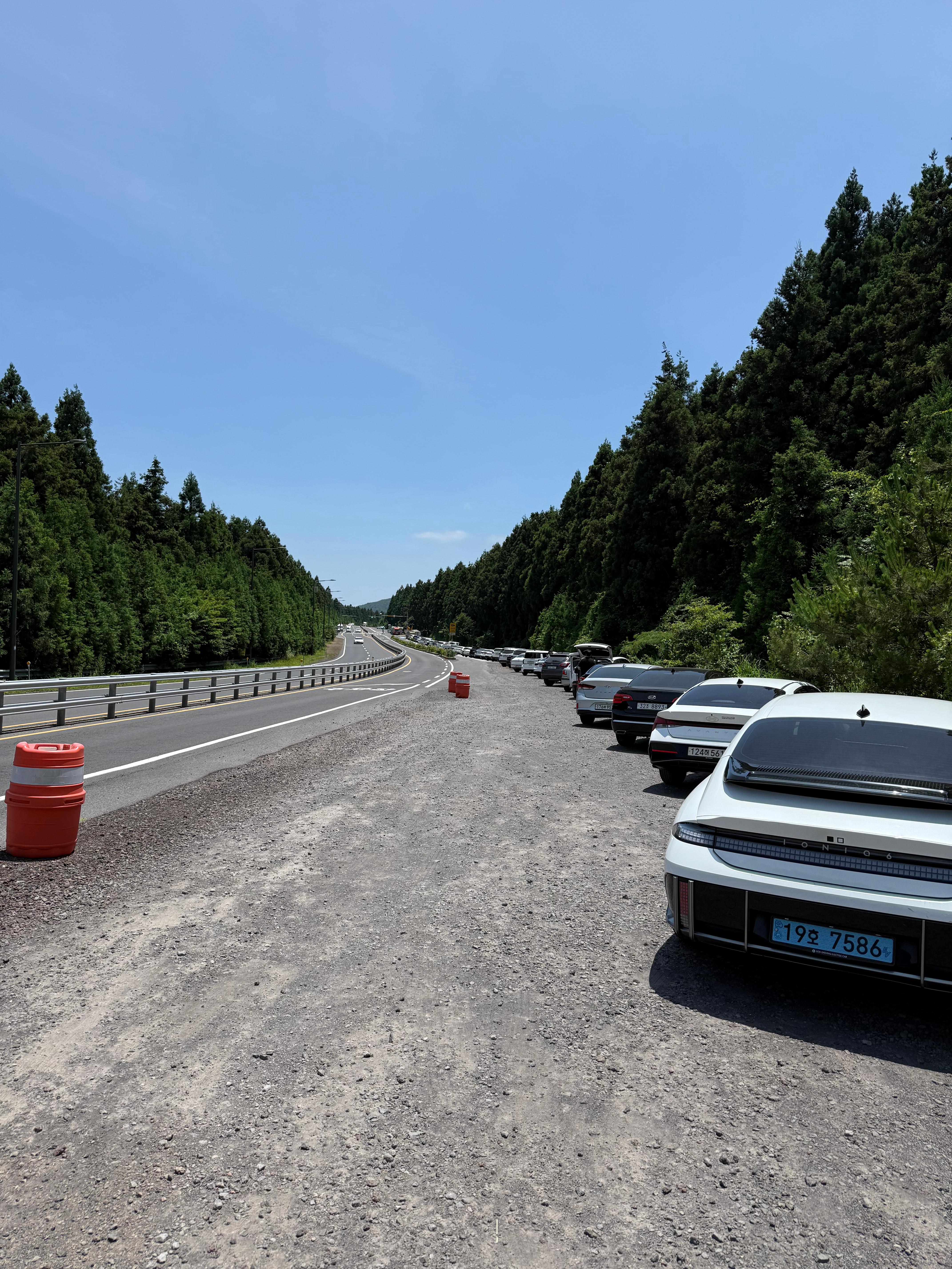 나중에 보겠지만 제주시쪽 입구인 A 위치에는 주차장이 없고 예쁜 숲으로 둘러싸인 도로만 있다.