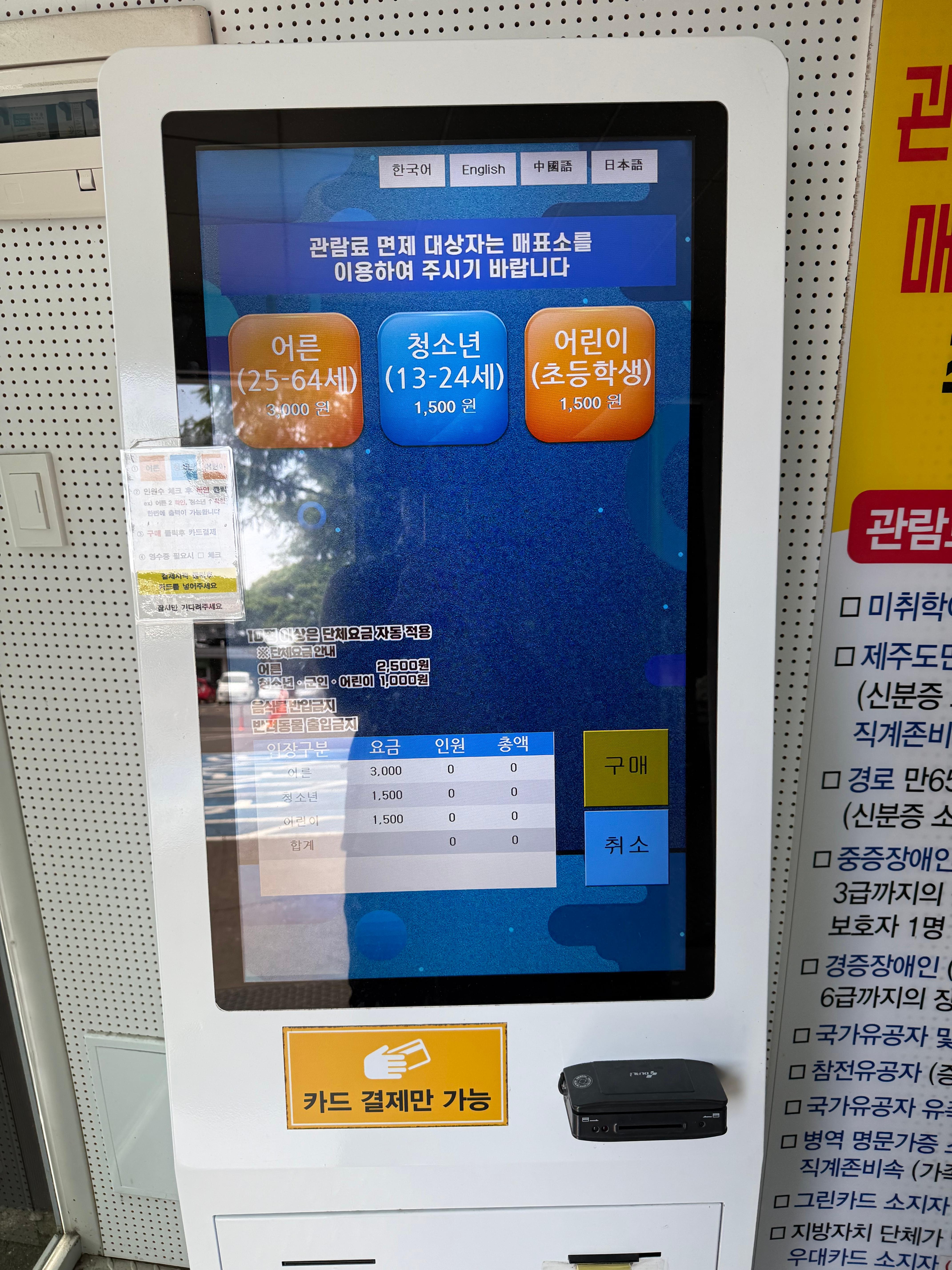 비자림은 주차는 무료지만 탐방을 하기 위해서는 성인 기준 3천원을 내야 한다.