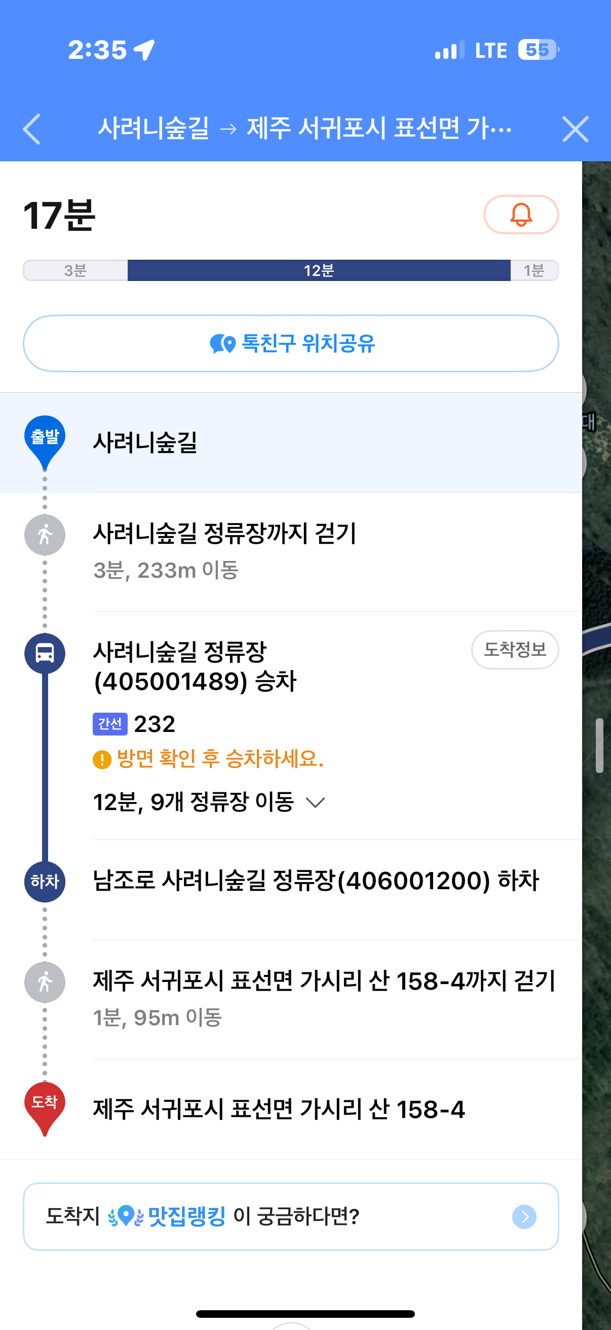 카카오맵에서는 9개 정류장을 12분만 가면 내가 출발했던 입구로 간다고 한다.