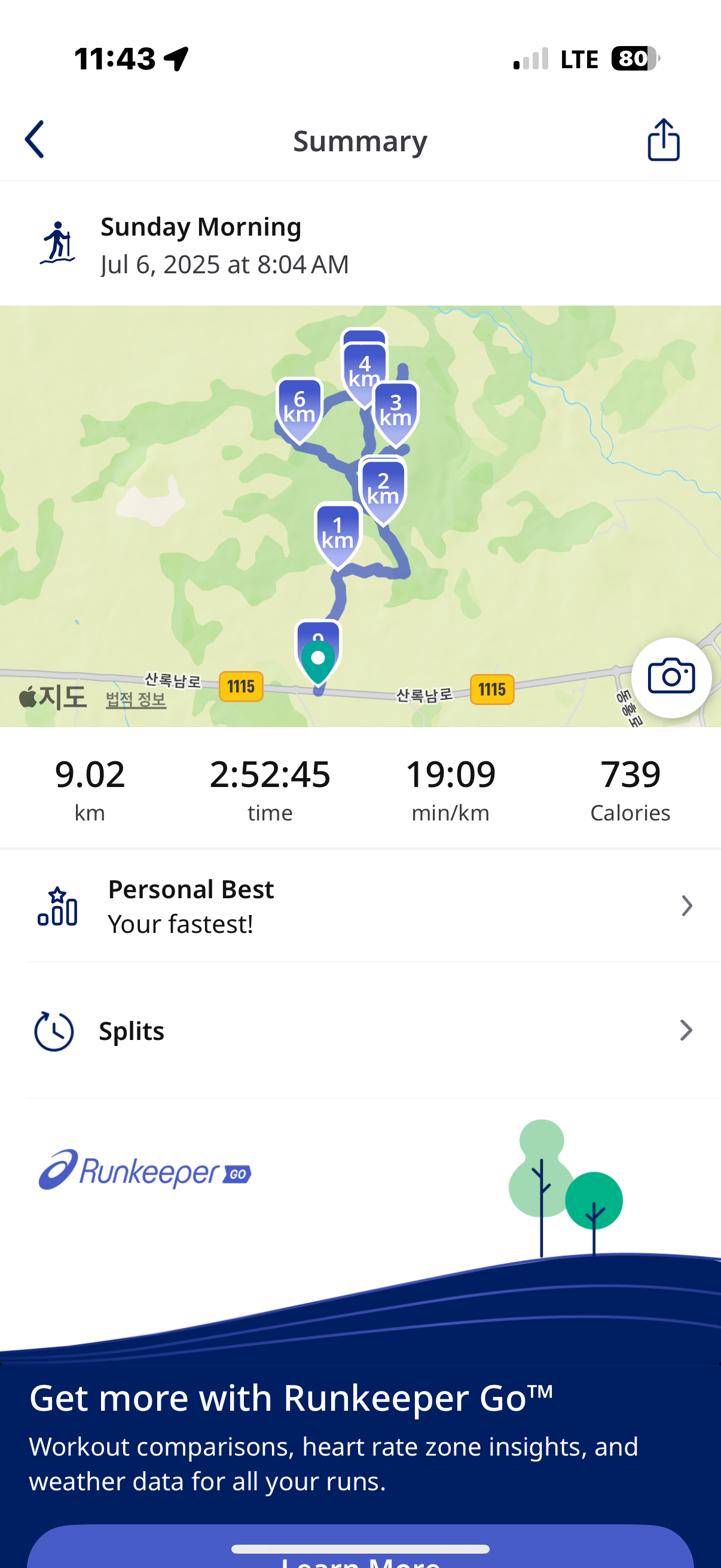 갈 때 내리막길에서 30분, 올 때 오르막길에서 40분 정도 걸린 것 같다.