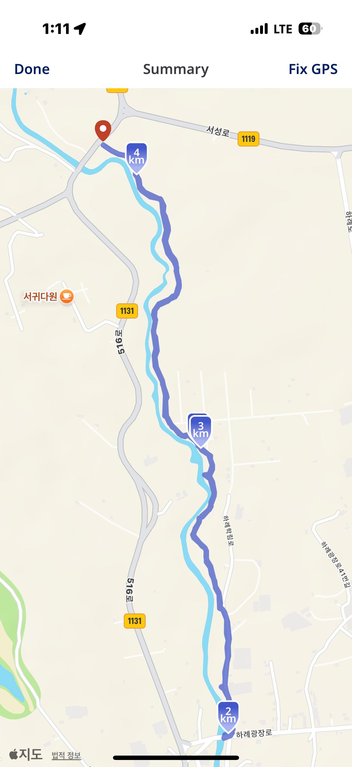 내가 중간에 두 세번 정도 길을 헤맸으나, 안내판에 적인 6km 정도의 거리와는 차이가 컸다.