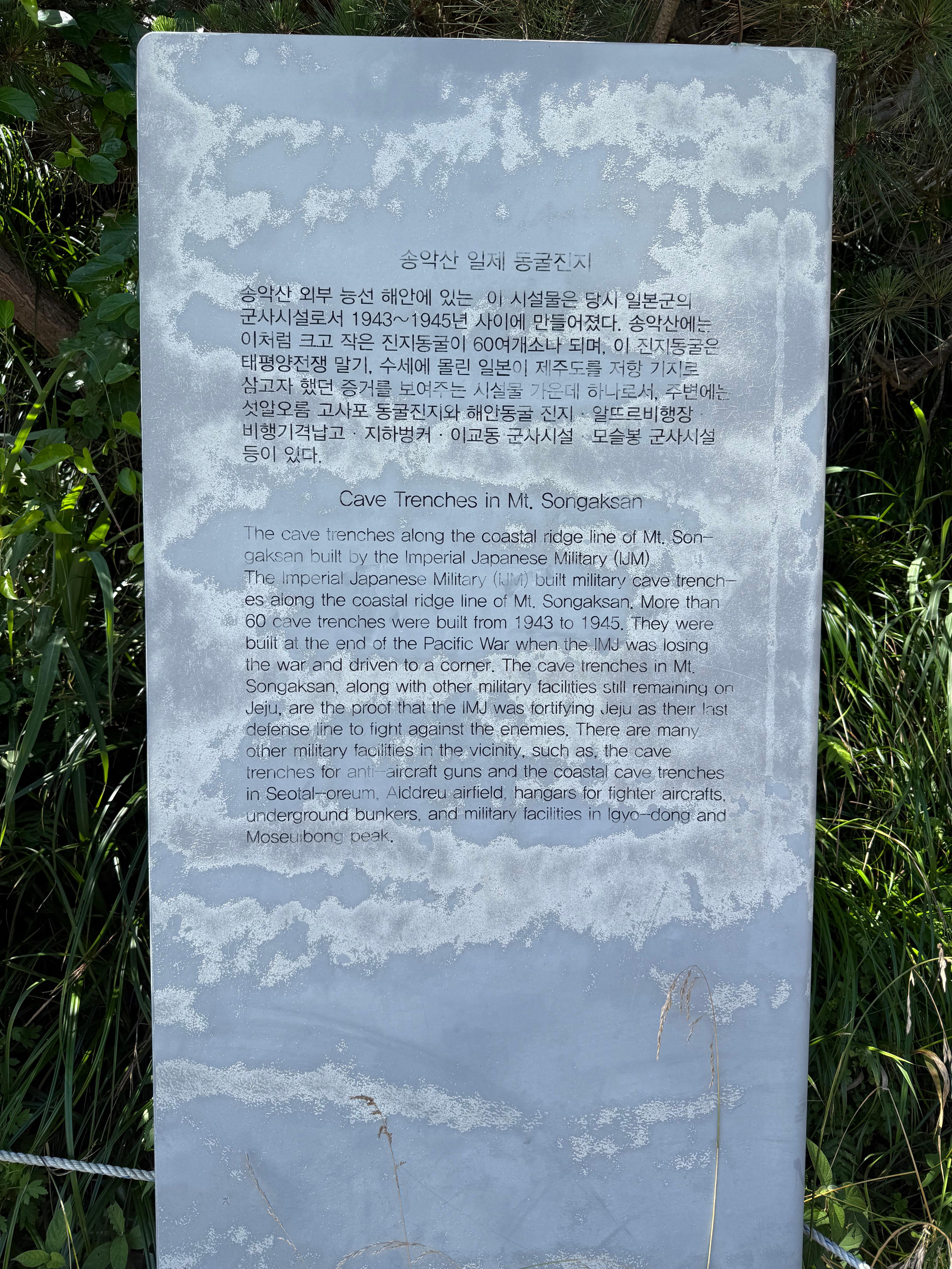 자세히 보니 일본이 만든 동굴 진지가 송악산 아래에 보인다.
