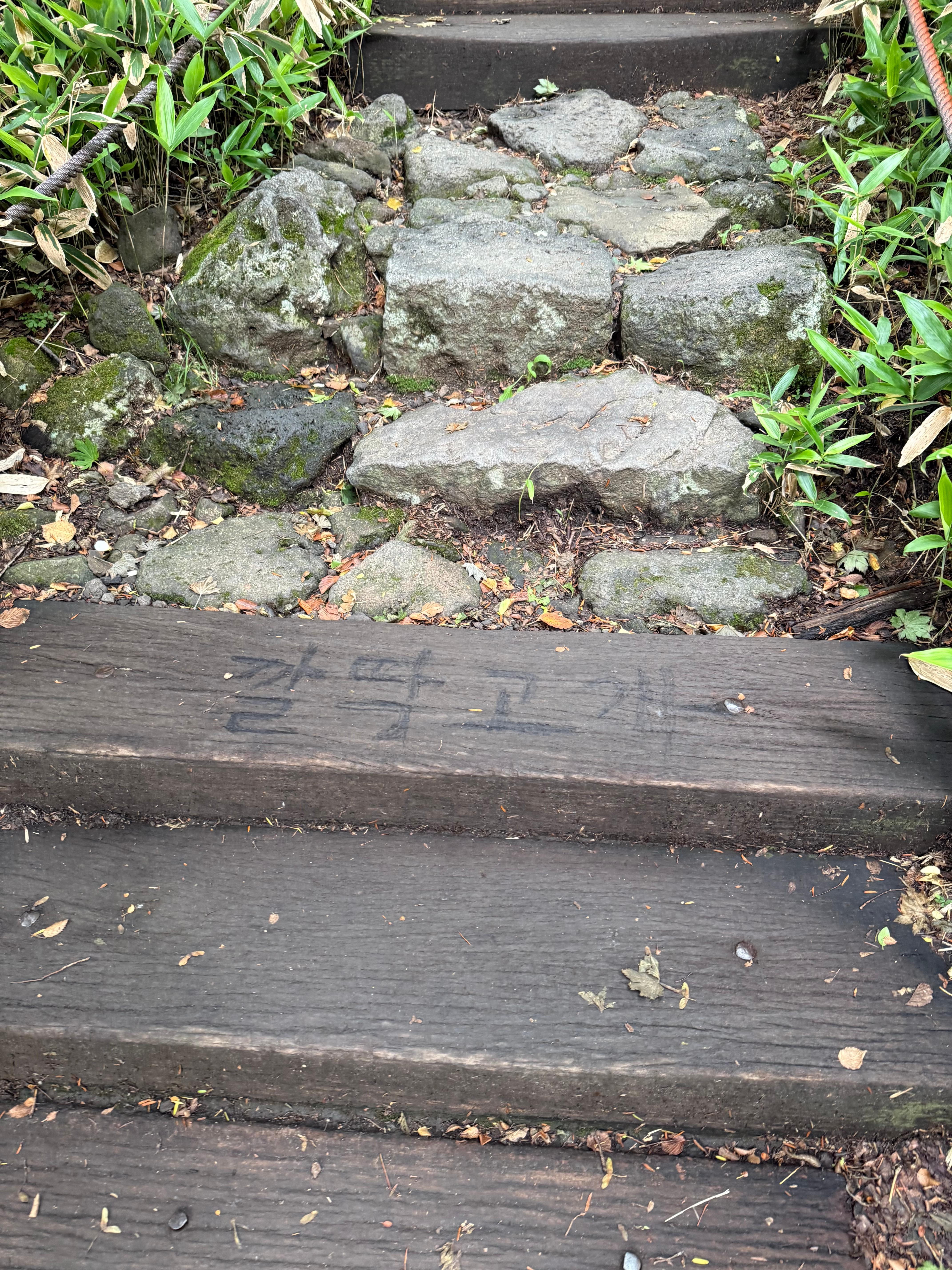 출발한지 약 1km 지점 쯤 되면 본격적으로 계단이 나오는데, 계단 맨 아래 부분에 이렇게 적혀있다.