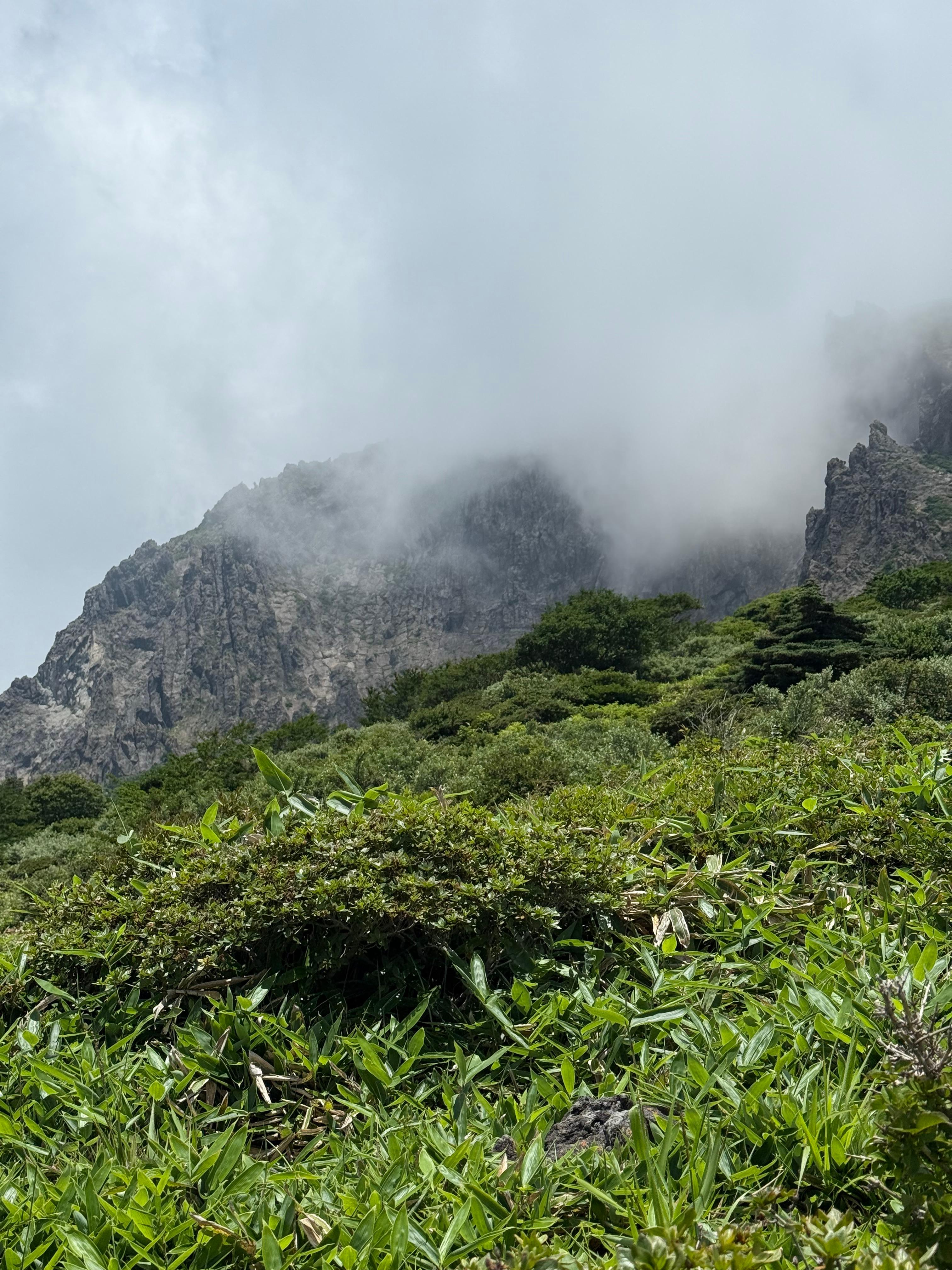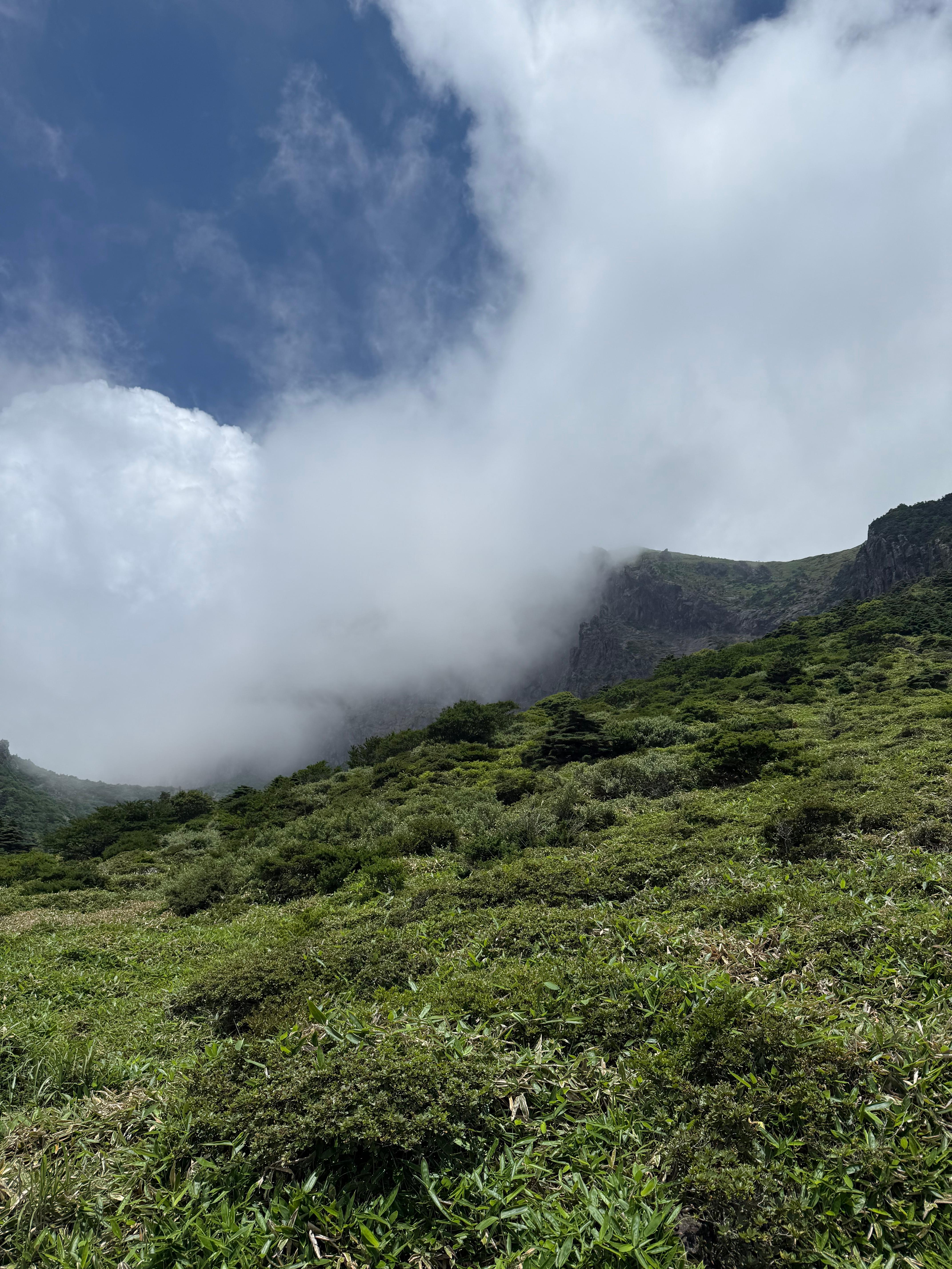 남벽을 보기 위해 왔는데 남벽은 구름에 가려 보이지 않았다.