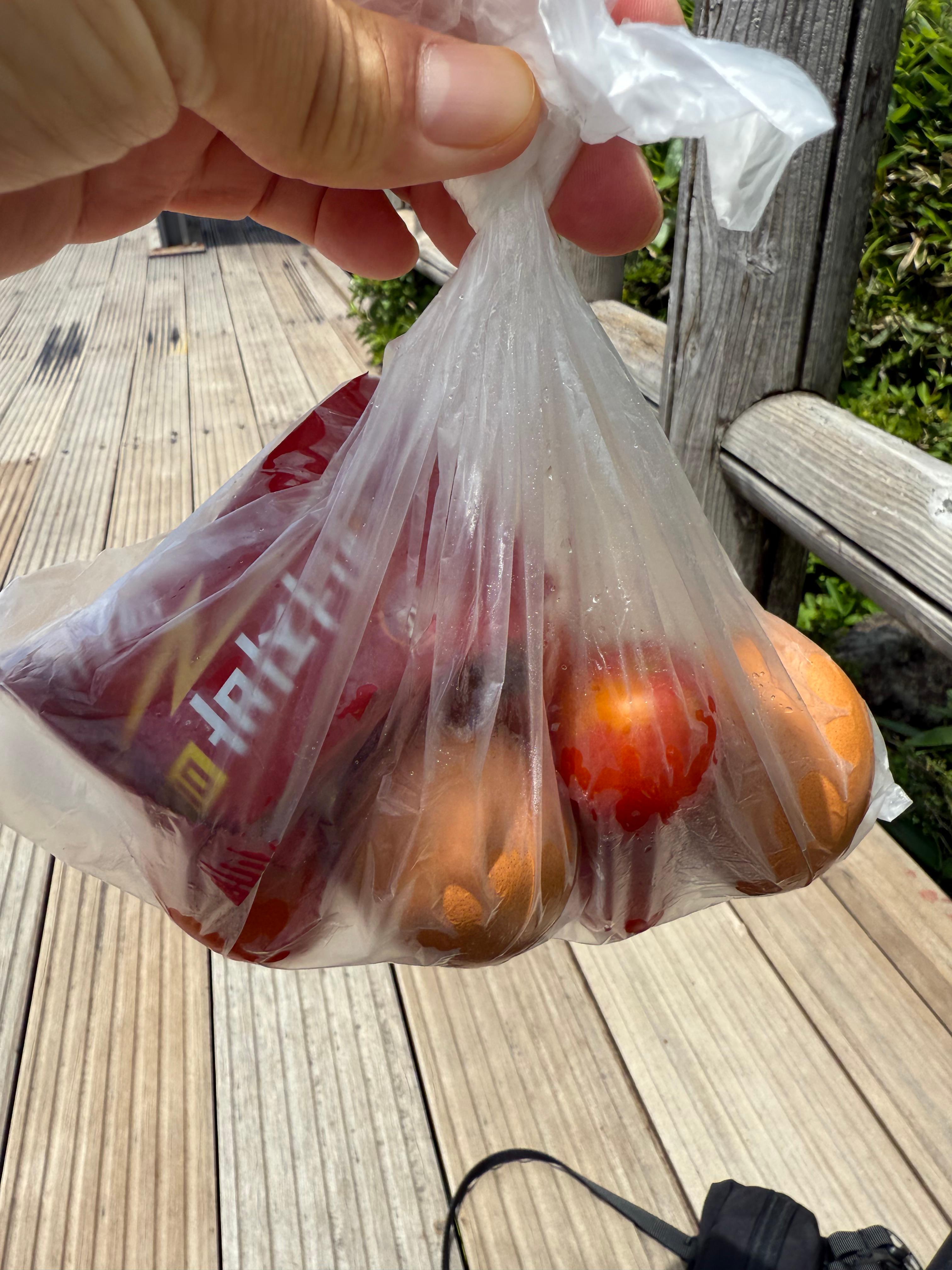 구름을 보니 아주 잠깐 동안 비켜줄지 모를 것 같아 가지고 간 삶은 달걀, 방울토마토, 에너지바를 먹으며 잠시 기다렸다.