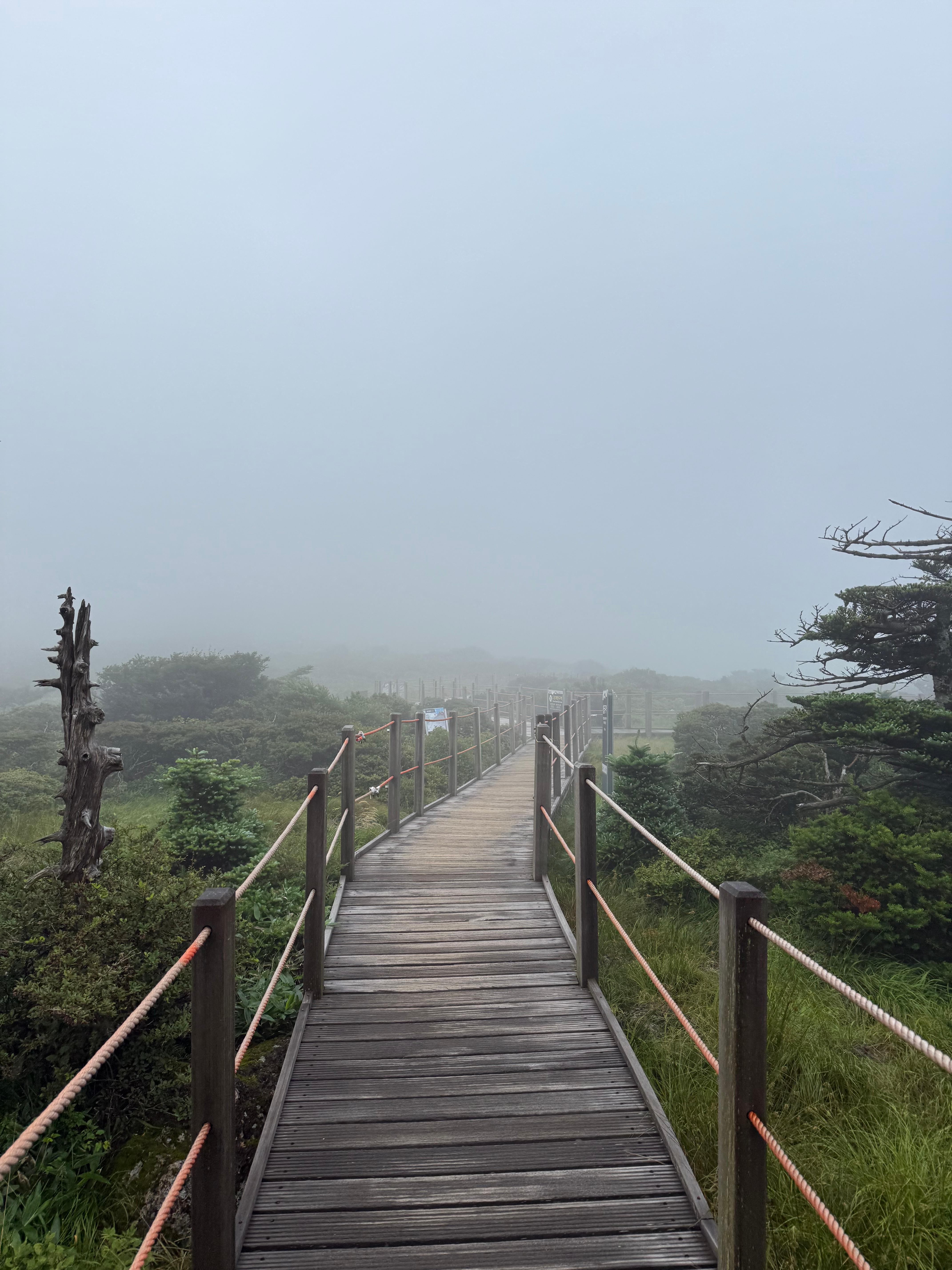 구름에 가려 20~30m 앞이 보이지 않는 길을 계속 걸었다.