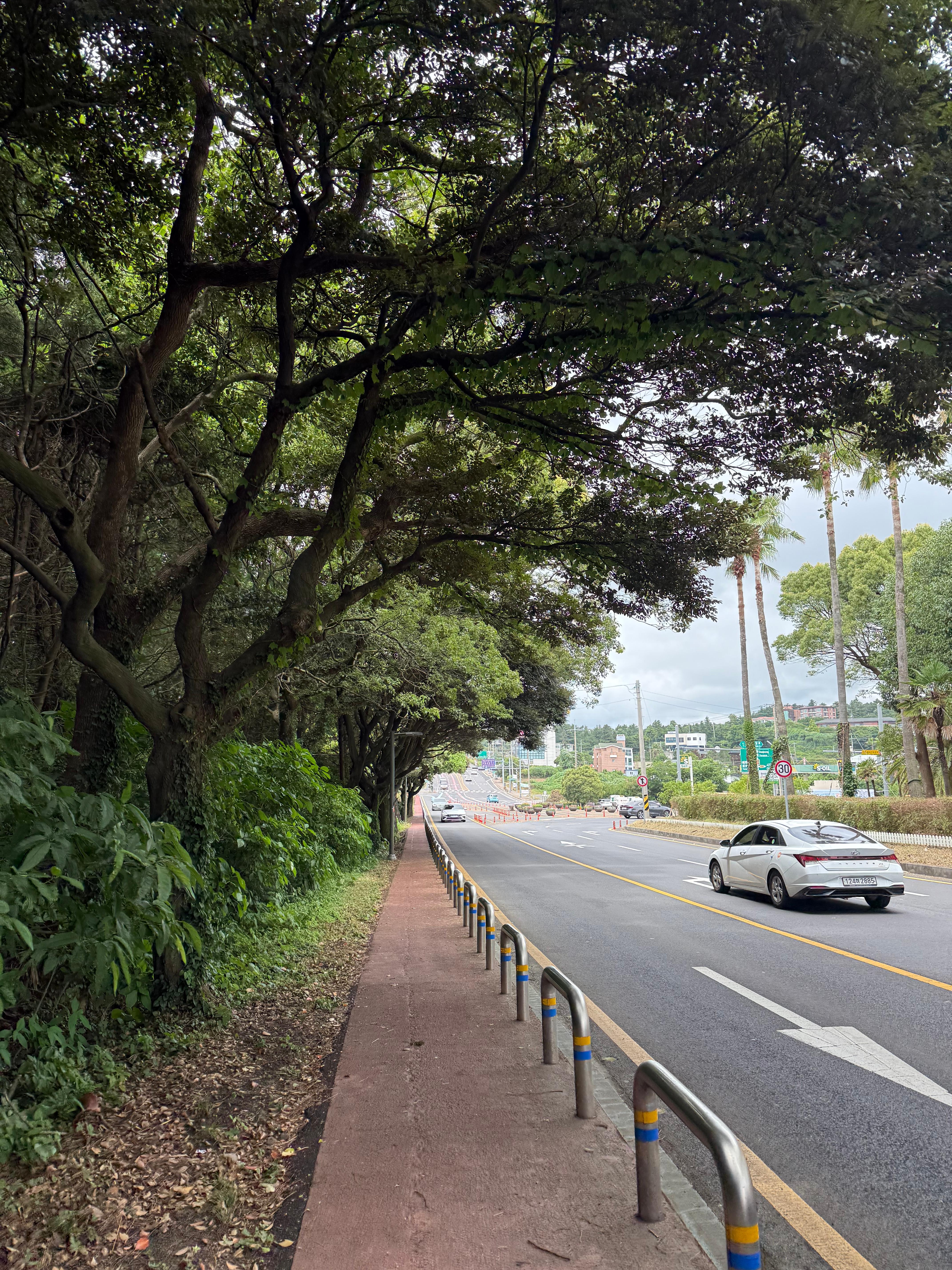 정류장에서 약 25분 정도 기다리니 버스가 왔고, 25분쯤 후 중문 고등학교 정류장에 내려 15분 정도 걸어 약천사 주차장에 도착했다.