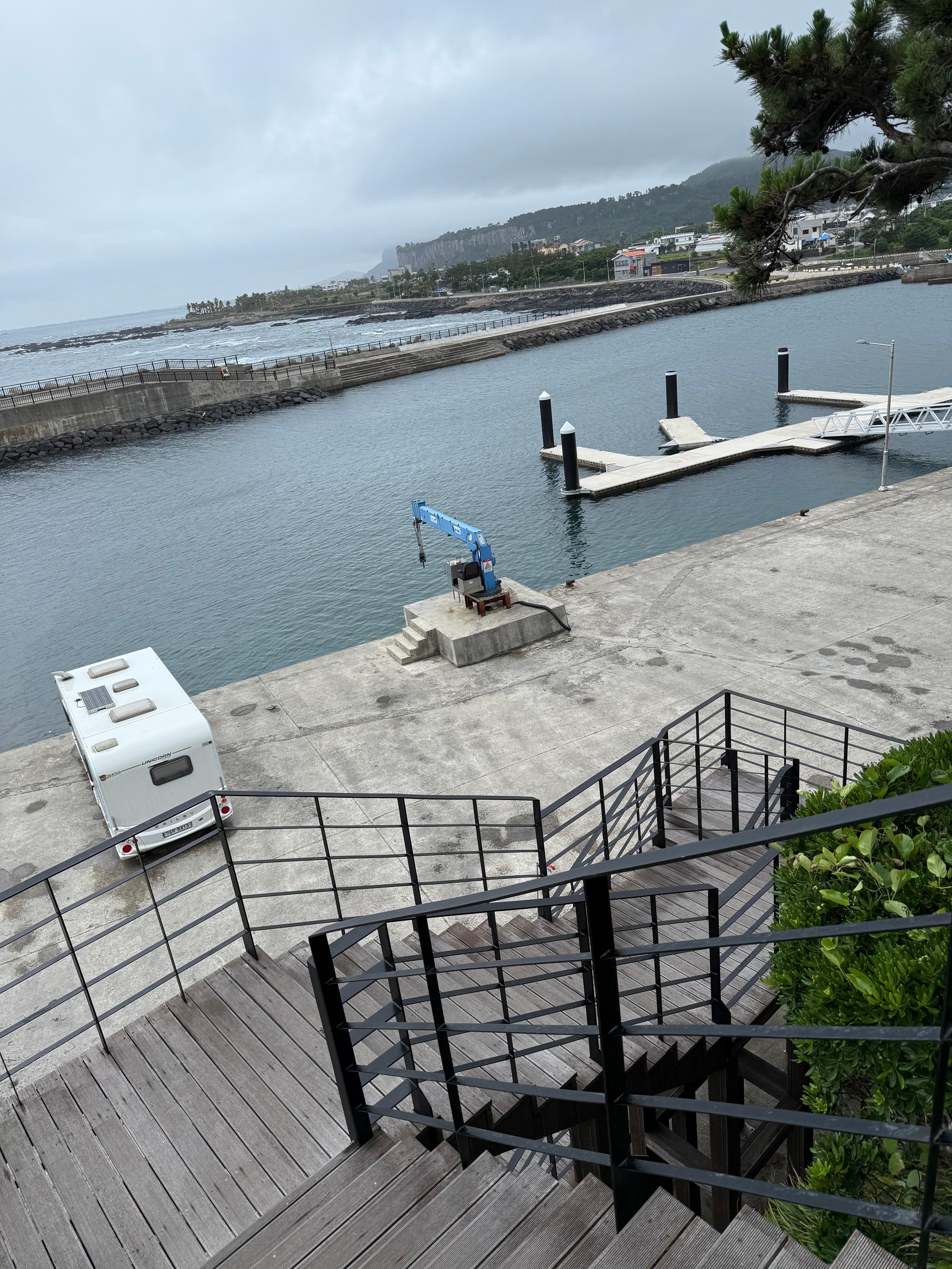 계단을 내려가니 하예포구는 배도 별로 없고, 사람도 없어서 마치 죽은 도시처럼 보였다.