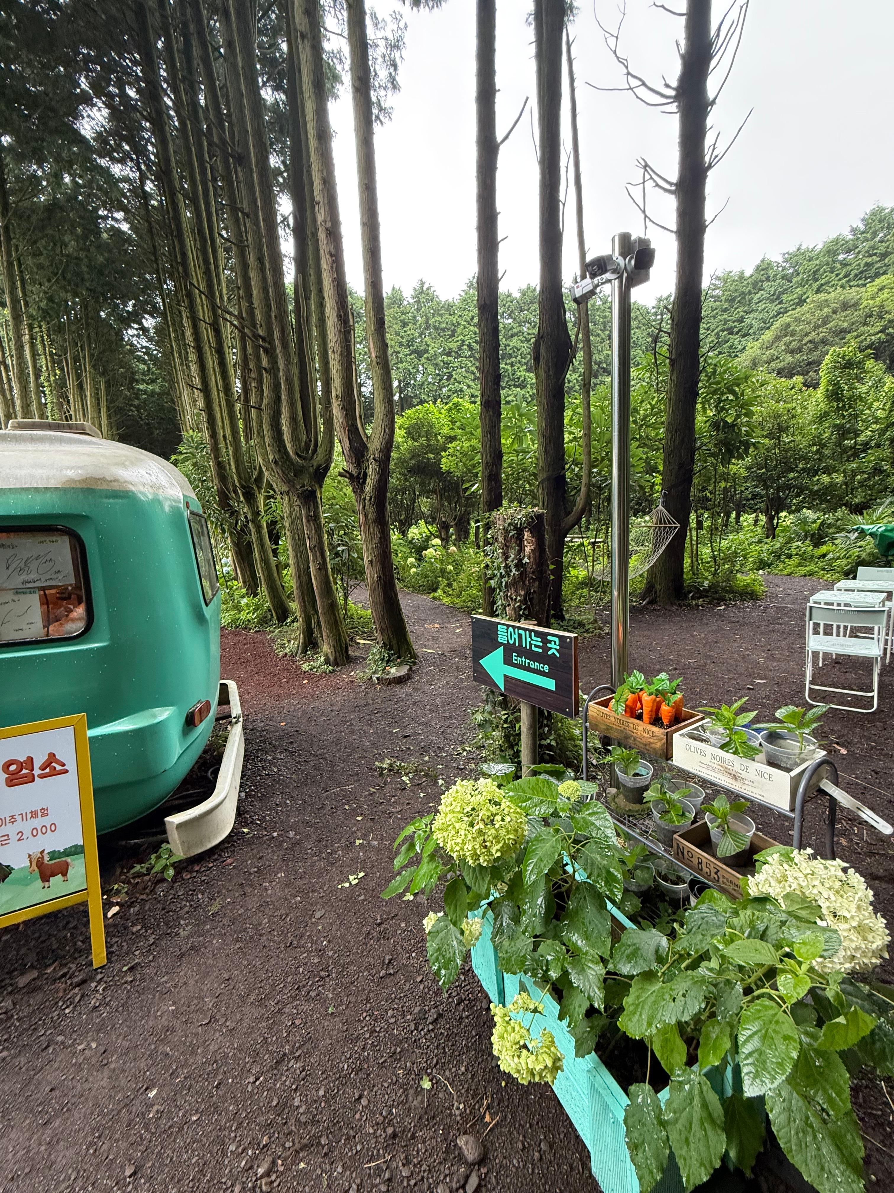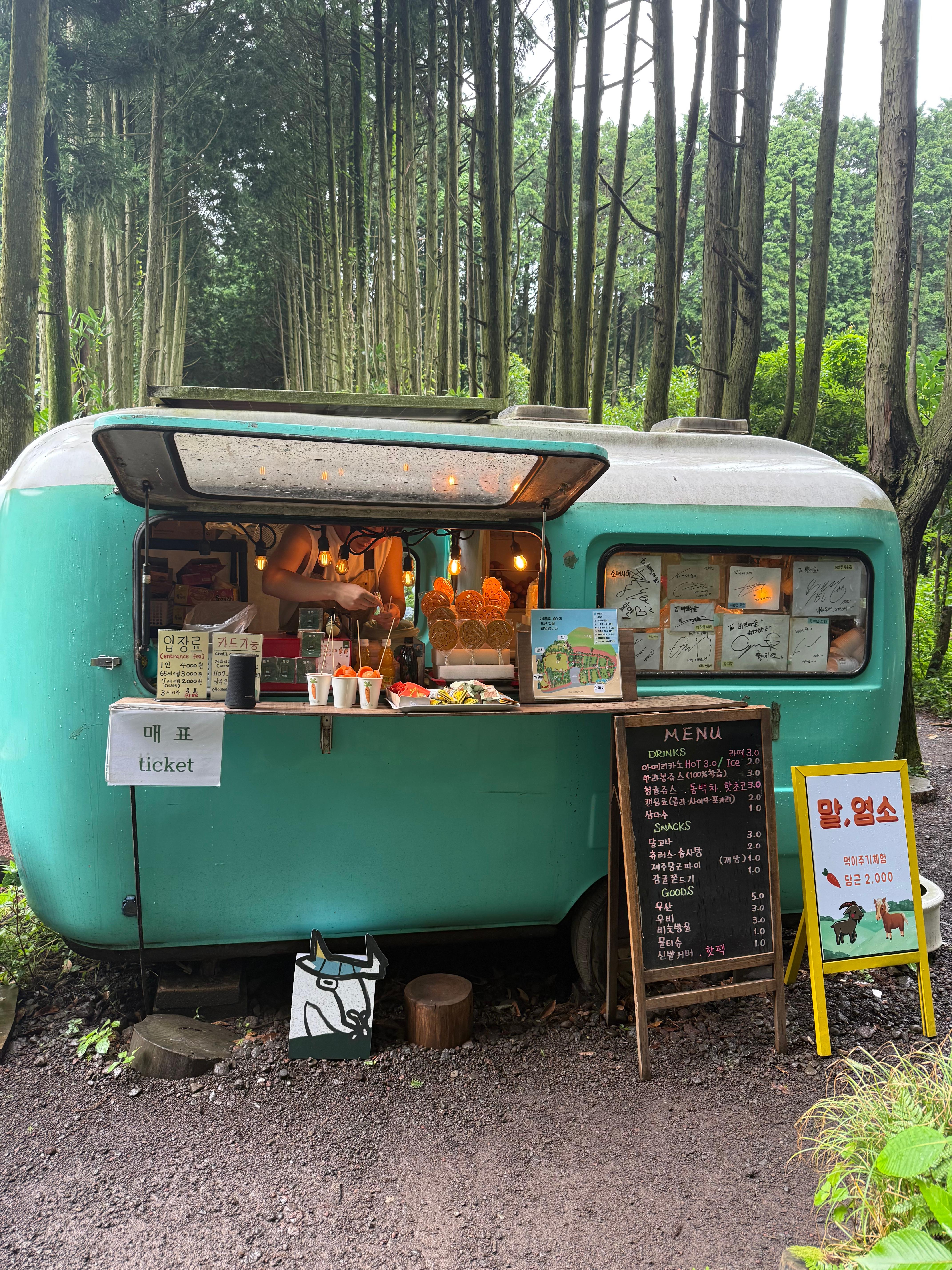 민트색의 작고 귀여운 캠핑카가 매표소이자 카페이다.