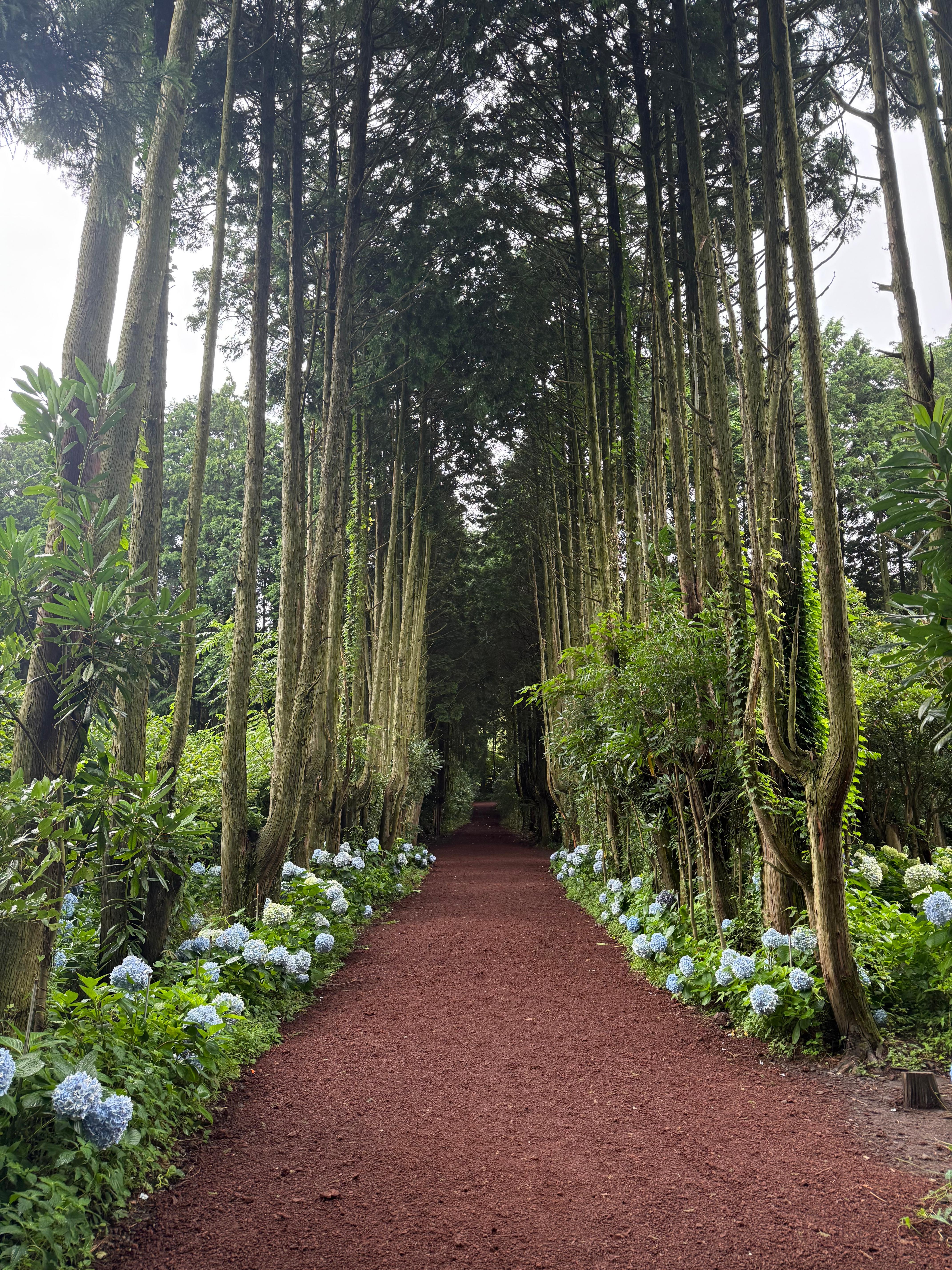 여기저기 사방에 삼나무와 편백나무를 길가에 배치해놨다.