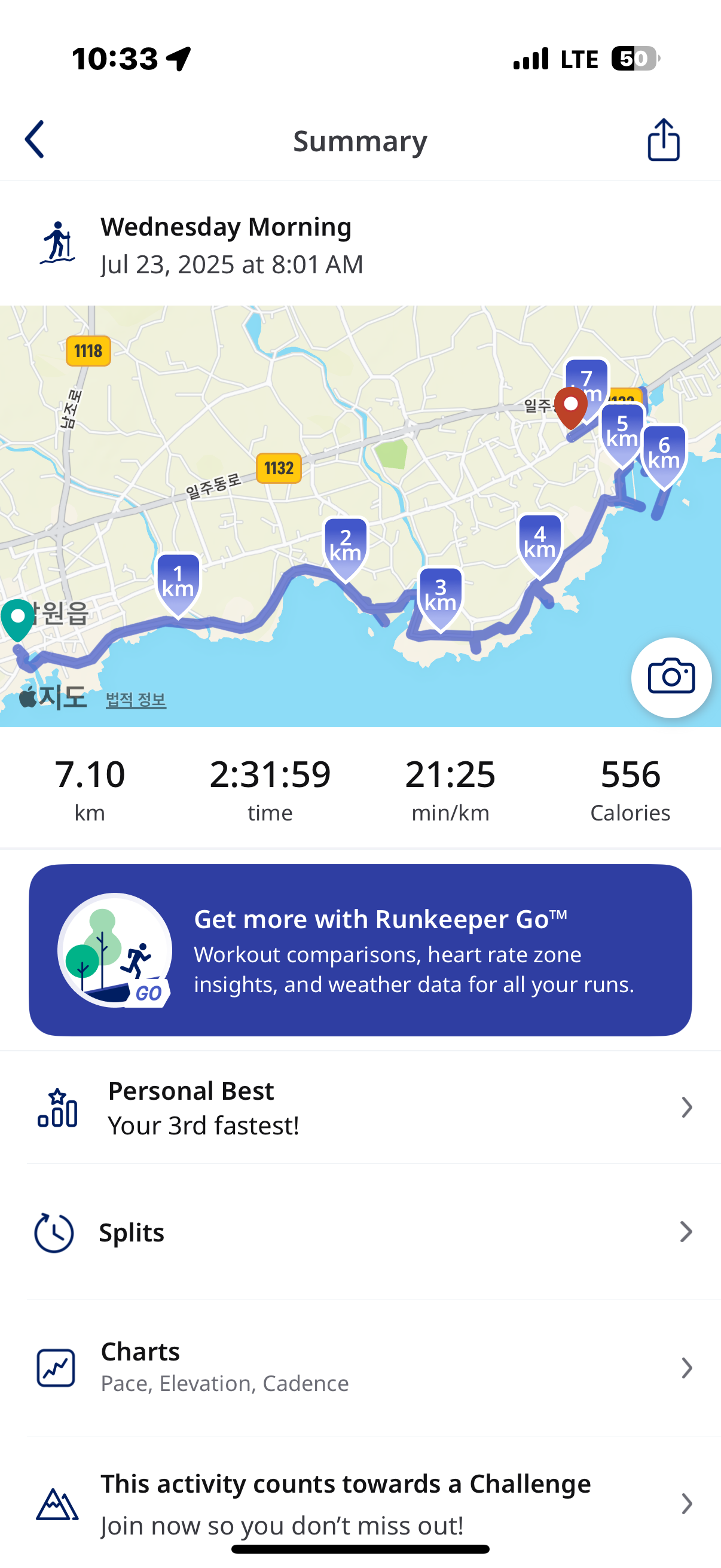 2시간 반동안 7km, 딱 좋을 정도로 깔끔하게 마쳤다.