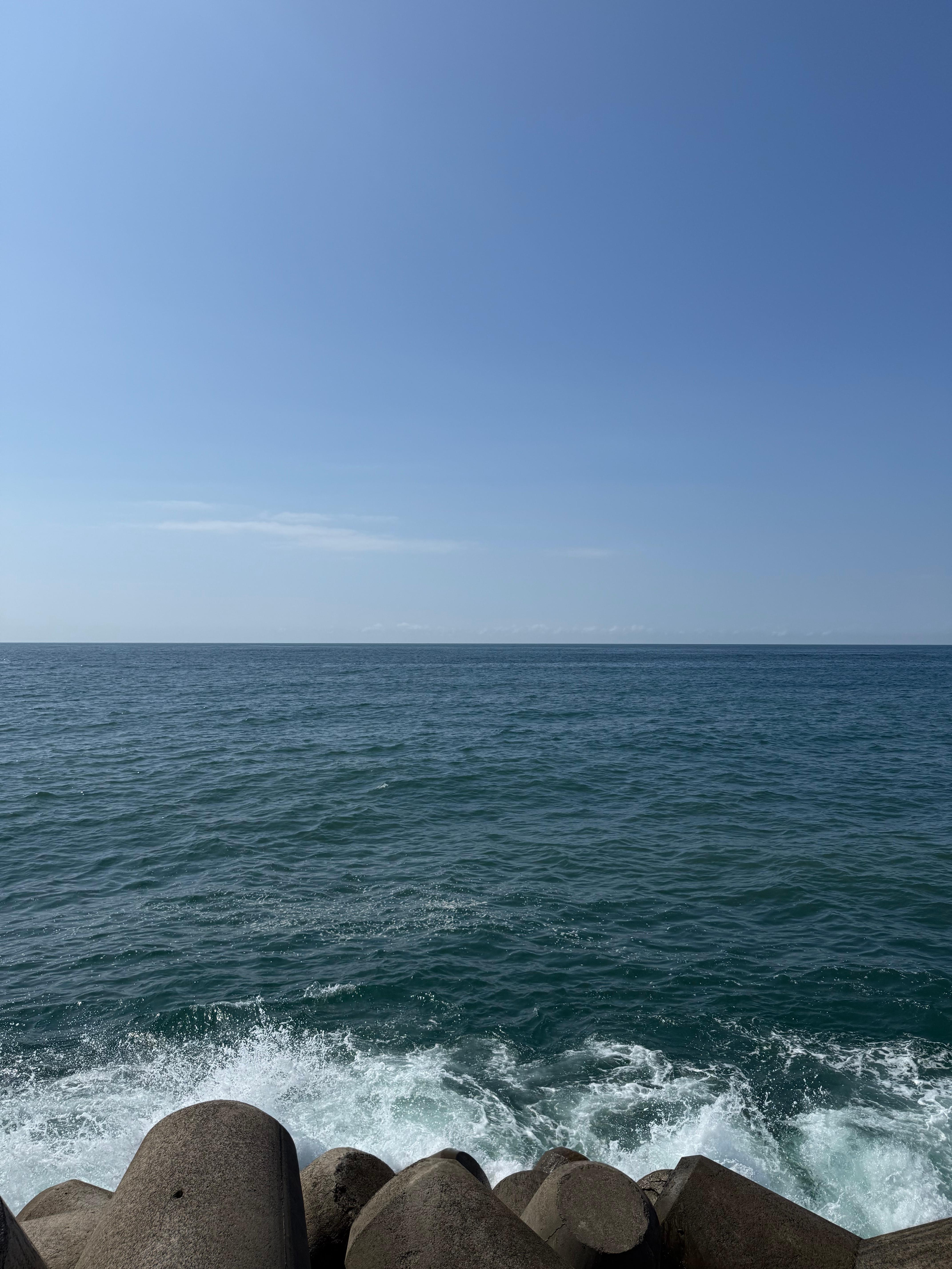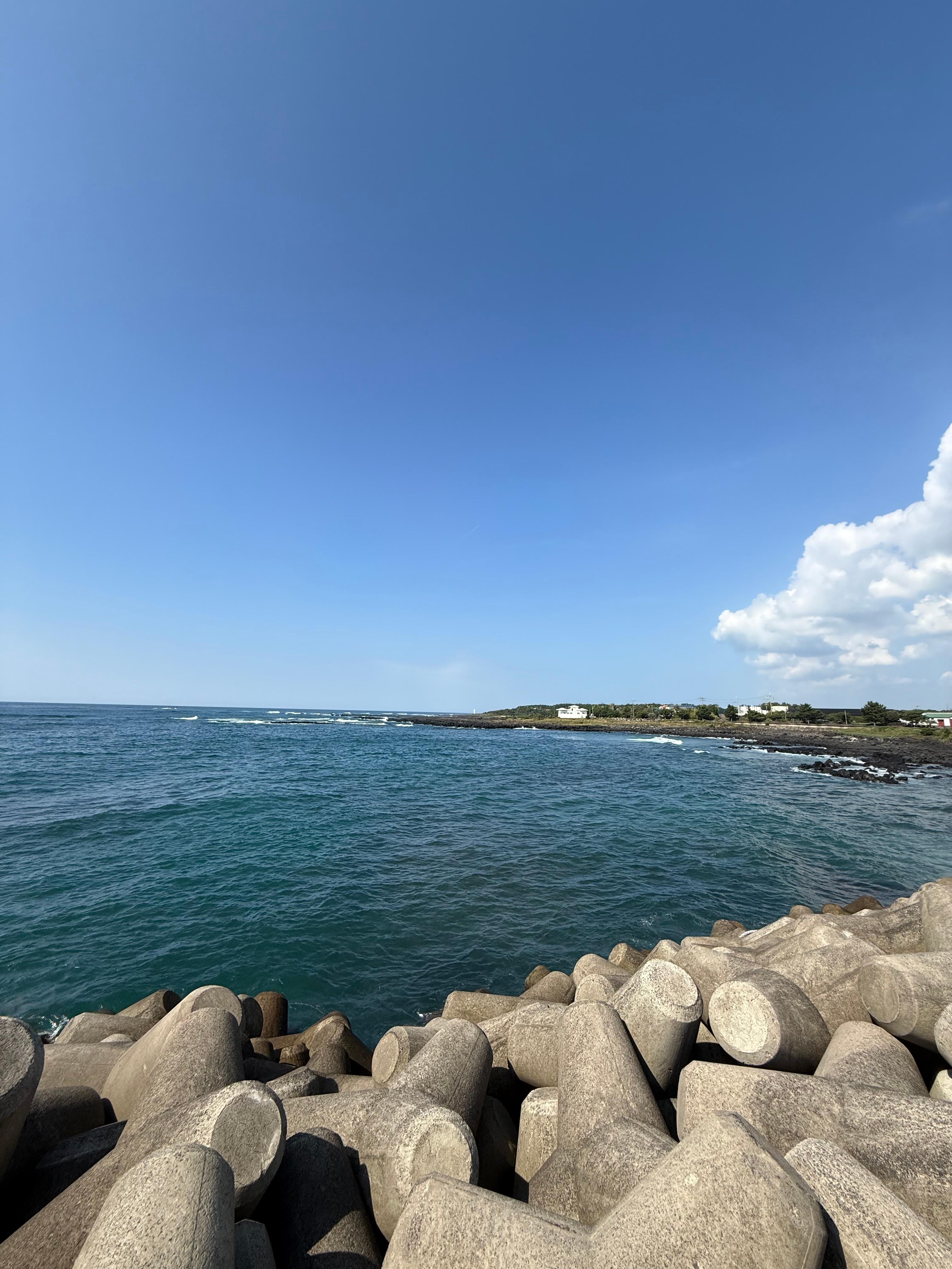 하늘은 파랗고 파도 소리가 듣기 좋다.