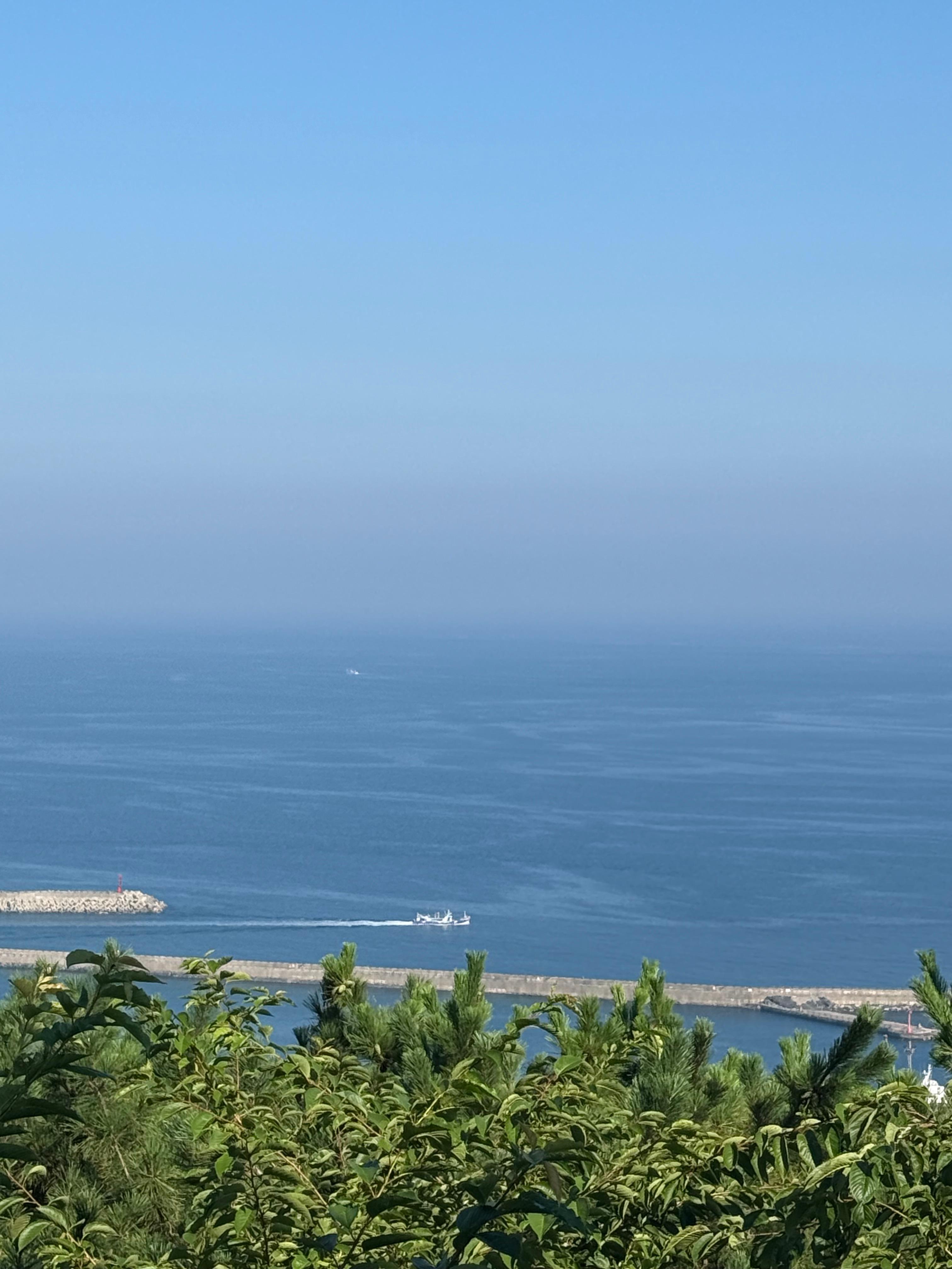 파란 하늘과 파란 바다가 만나는 경계인 수평선이 분명하게 보이는 그 순간.