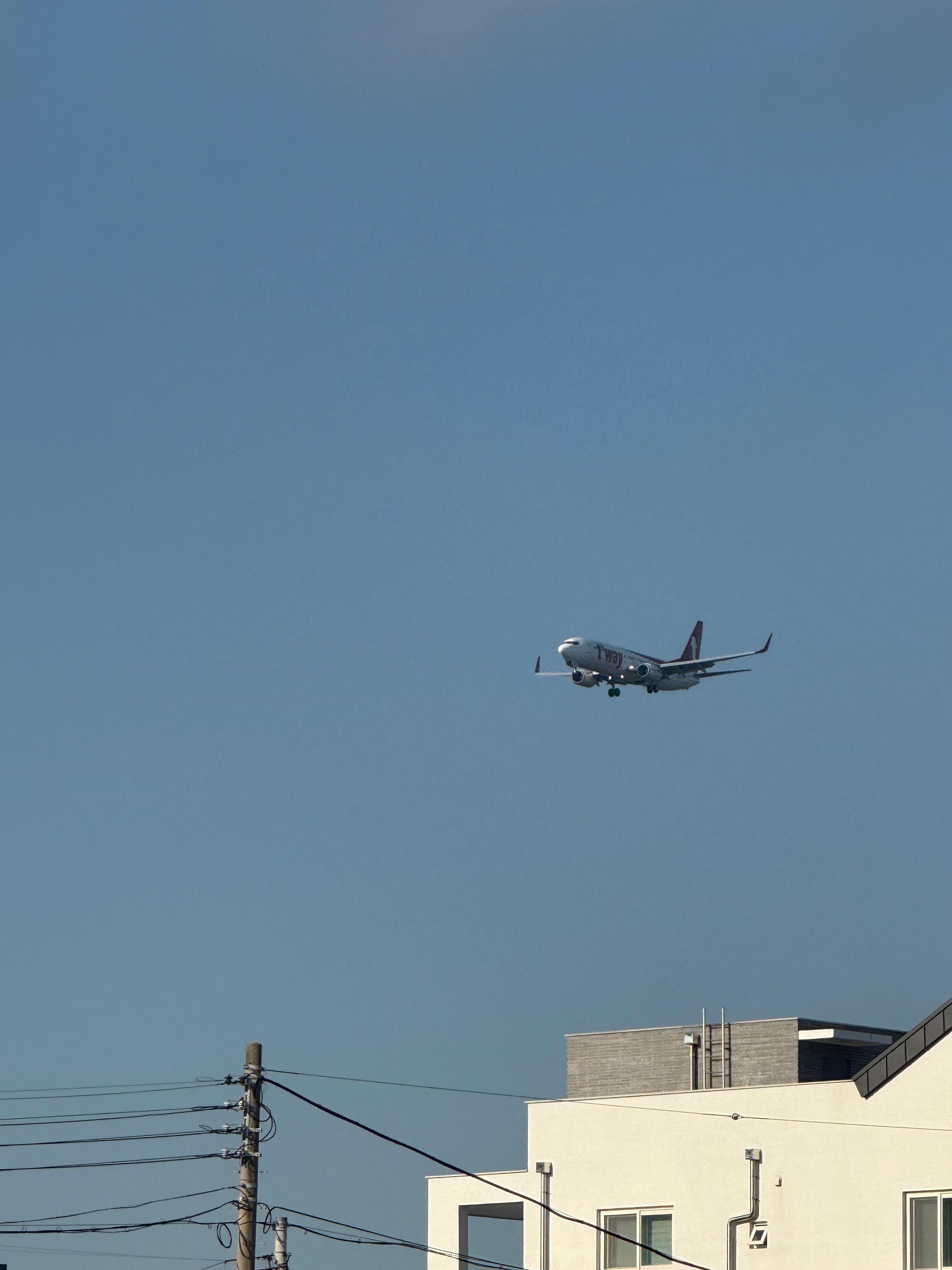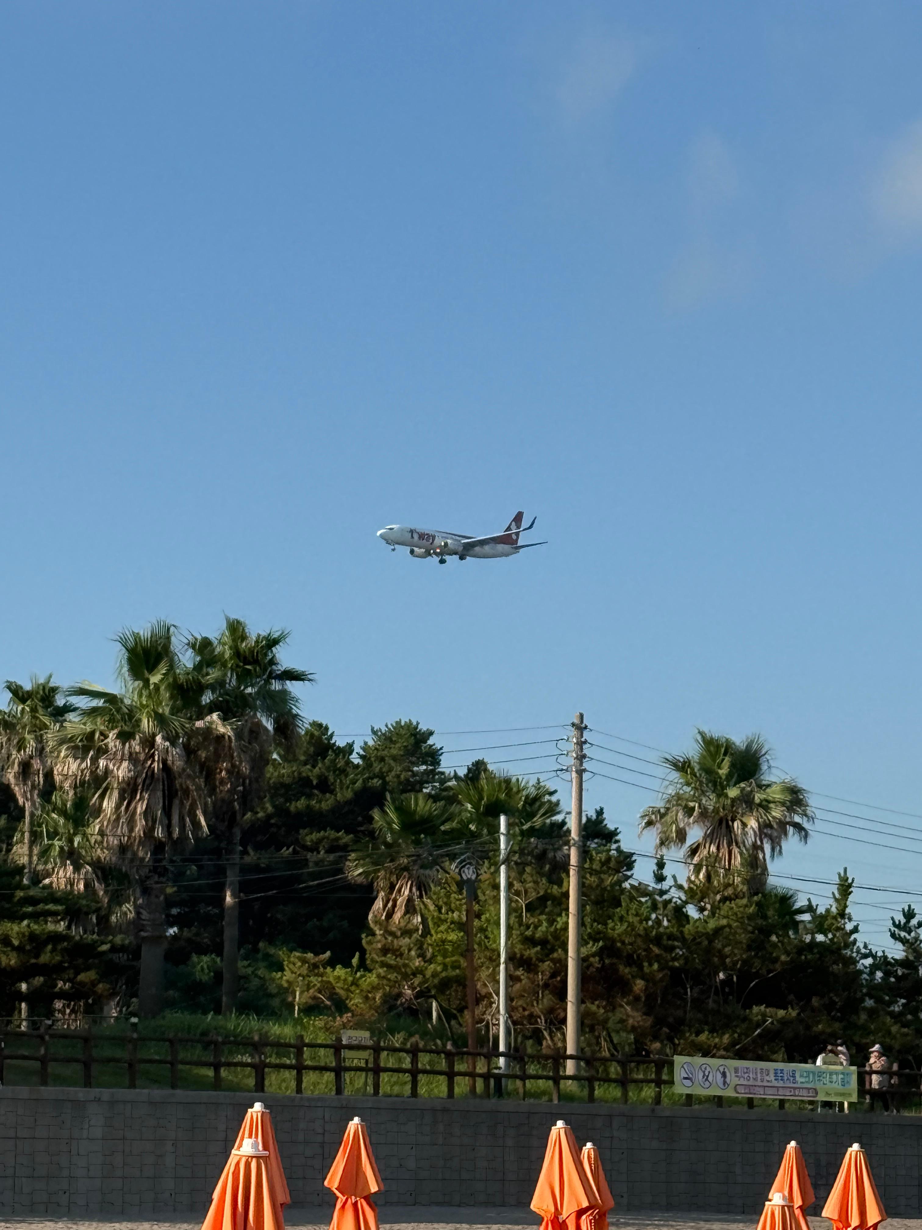 사진 찍다 보니 뒤로 비행기가 내려오고 있었다.