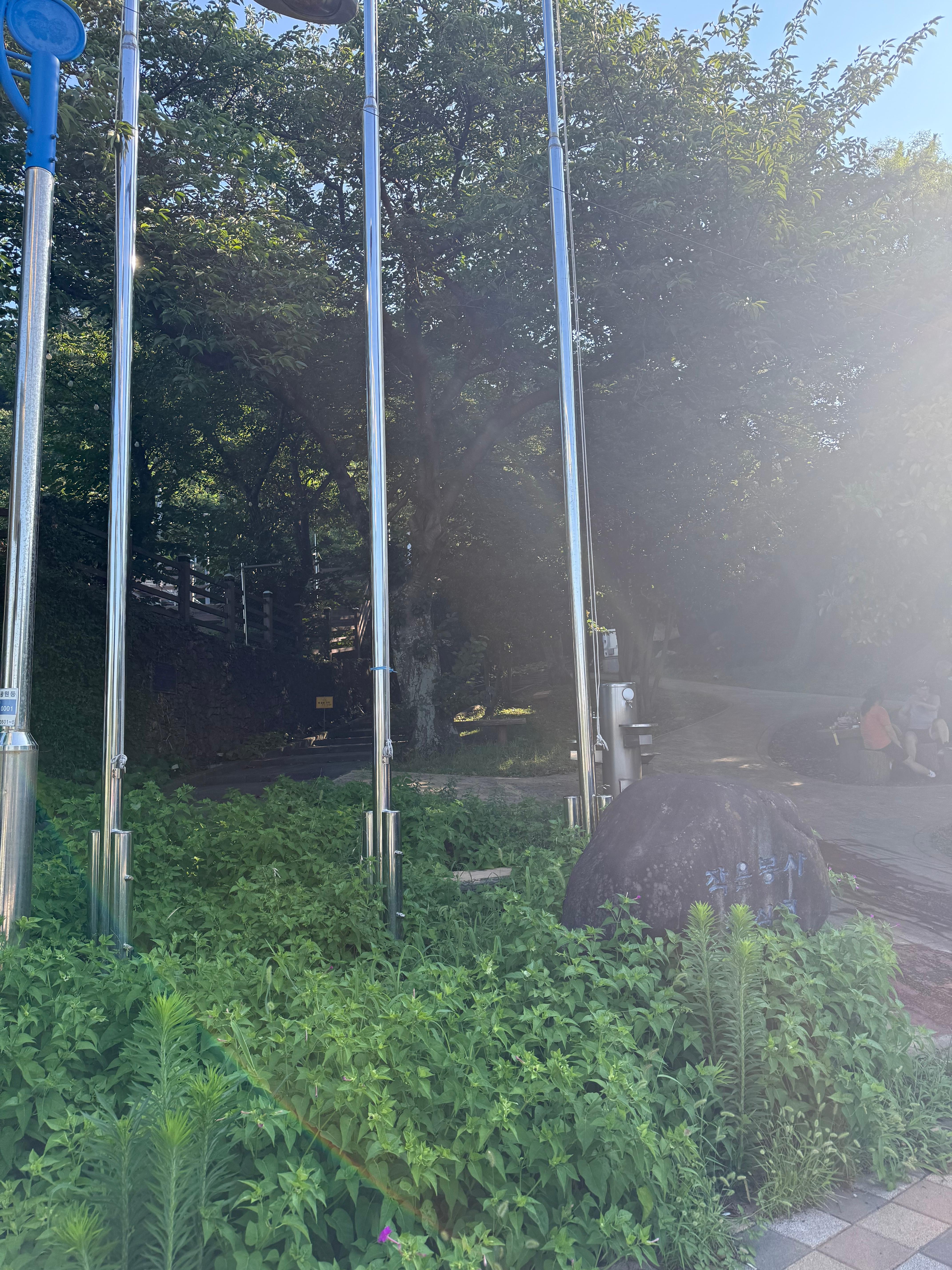 정상에는 수많은 할머니들과 할아버지들이 운동기구들로 운동을 하고 있었다.